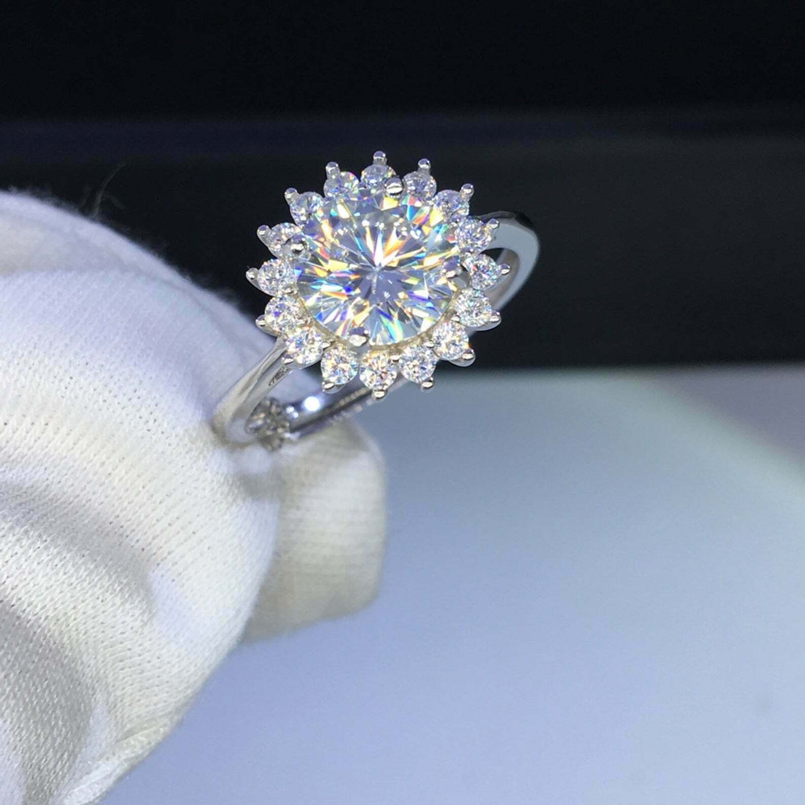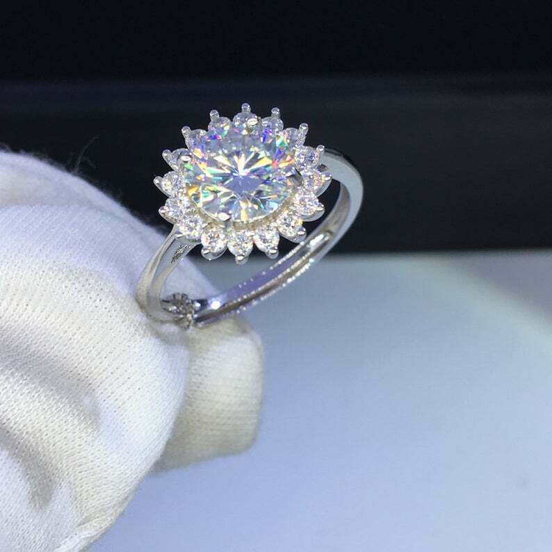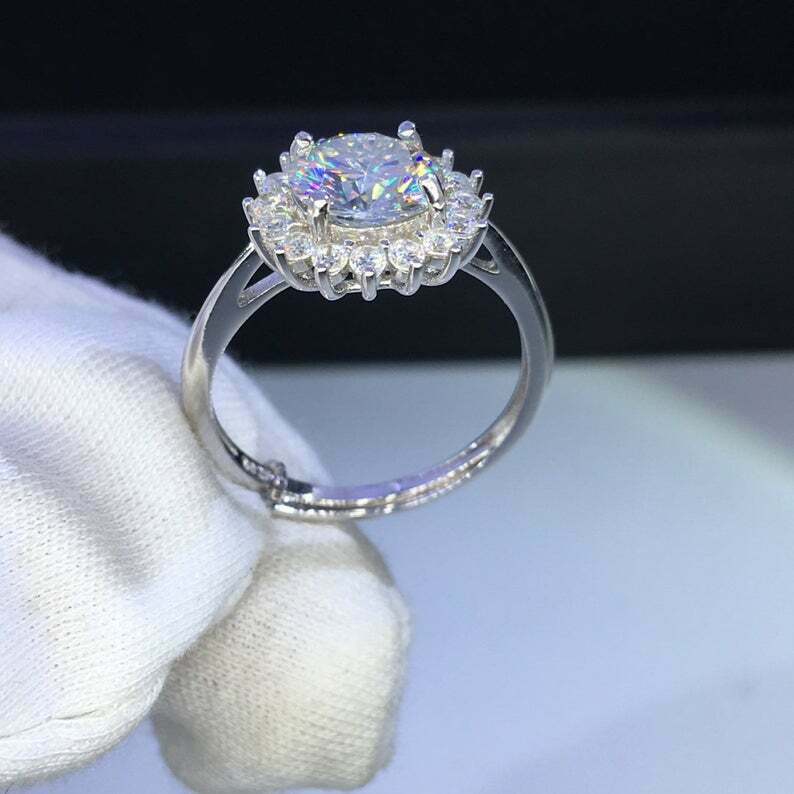 2.2ct Round Cut VVS1D Diamond Engagement Ring Cluster Halo 14k White Gold Finish