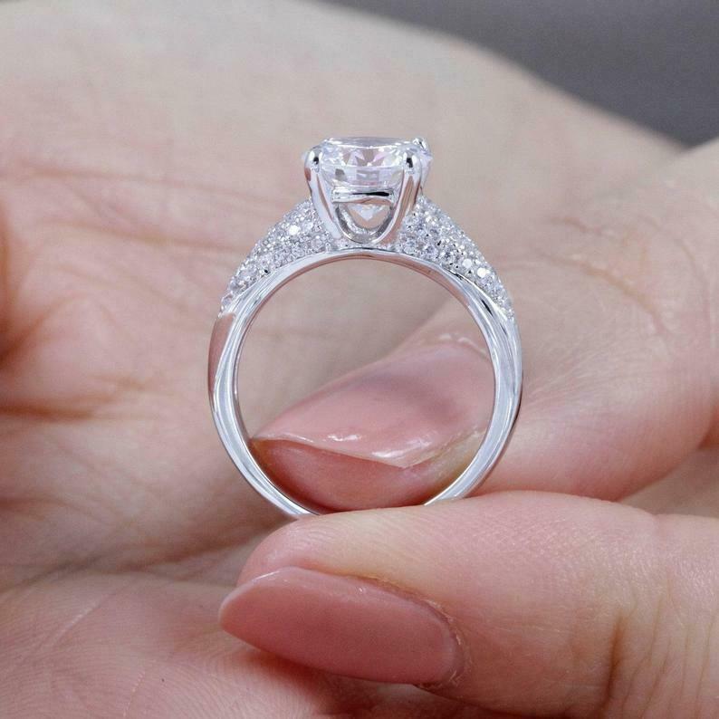 2.2ct Round Cut Diamond Engagement Ring Cluster Accent Solitaire 14k White Gold Over