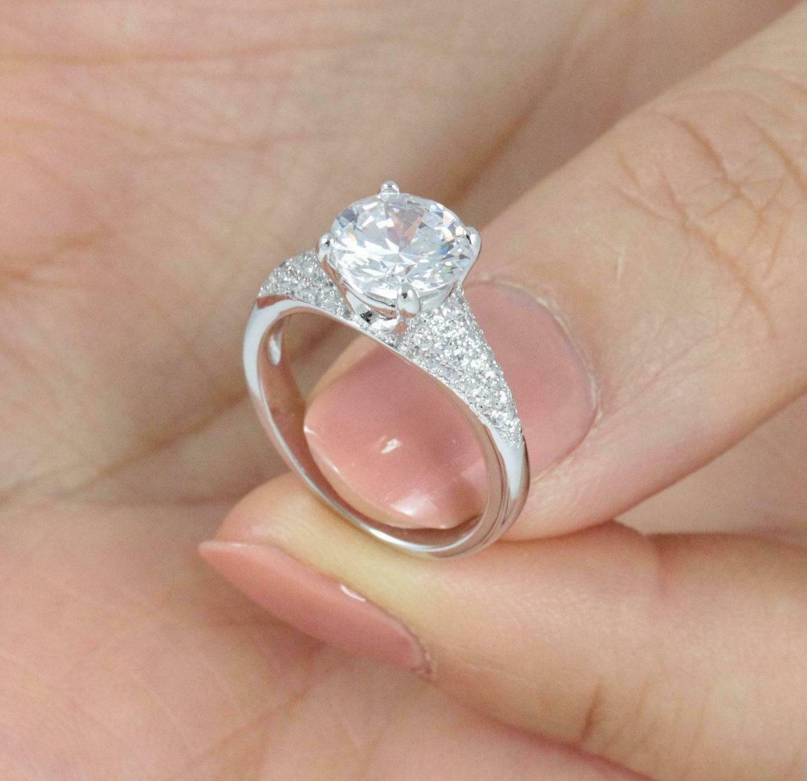 2.2ct Round Diamond Engagement Ring Cluster Accent Solitaire 14k White Gold Over