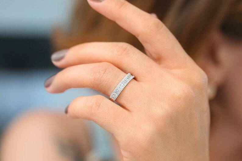 2.2ct Wedding Band Baguette Cut Diamond 3 Row Channel Set 14k Yellow Gold Finish
