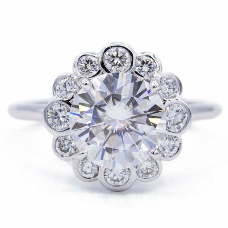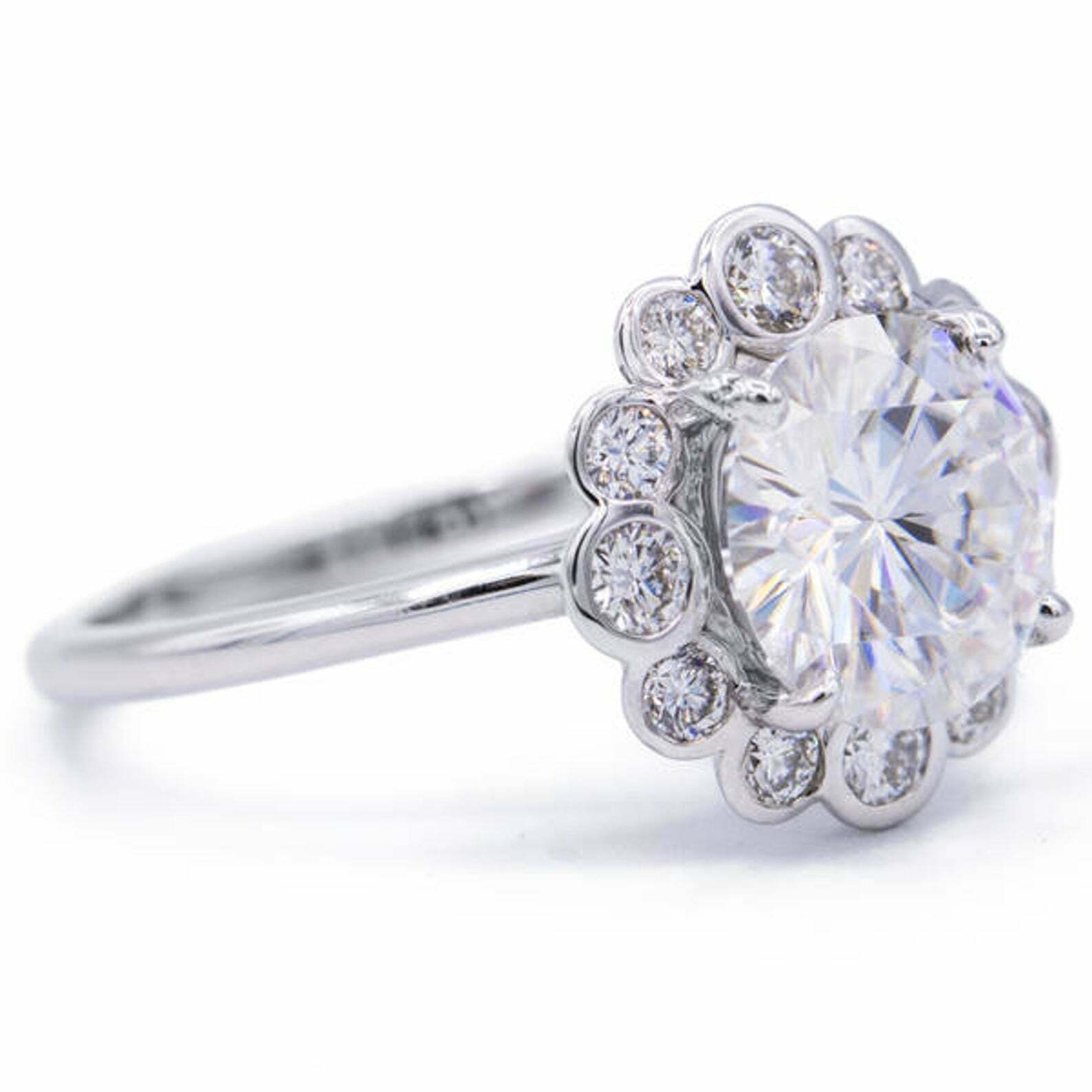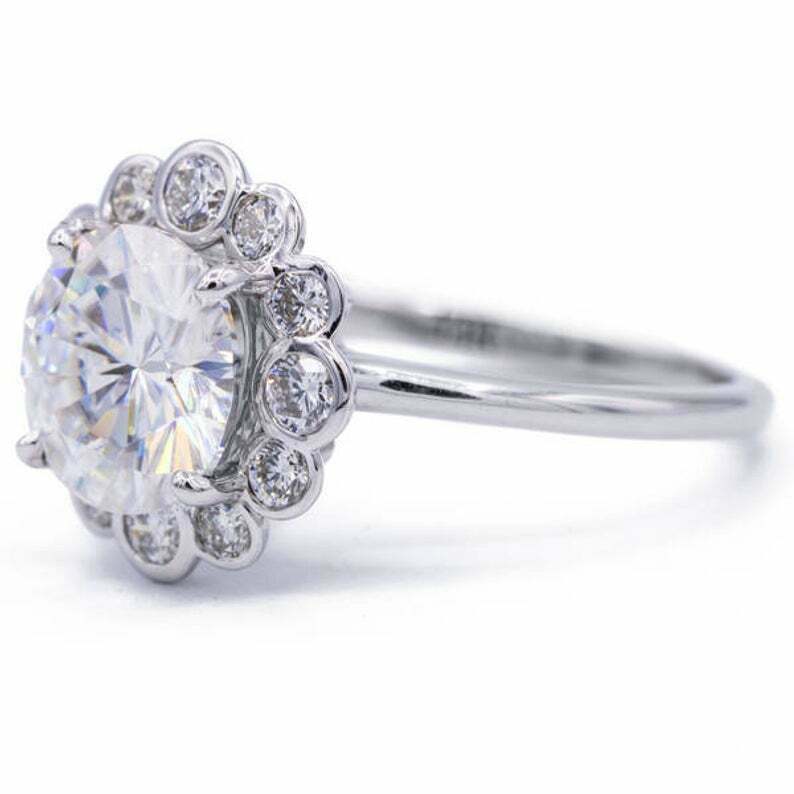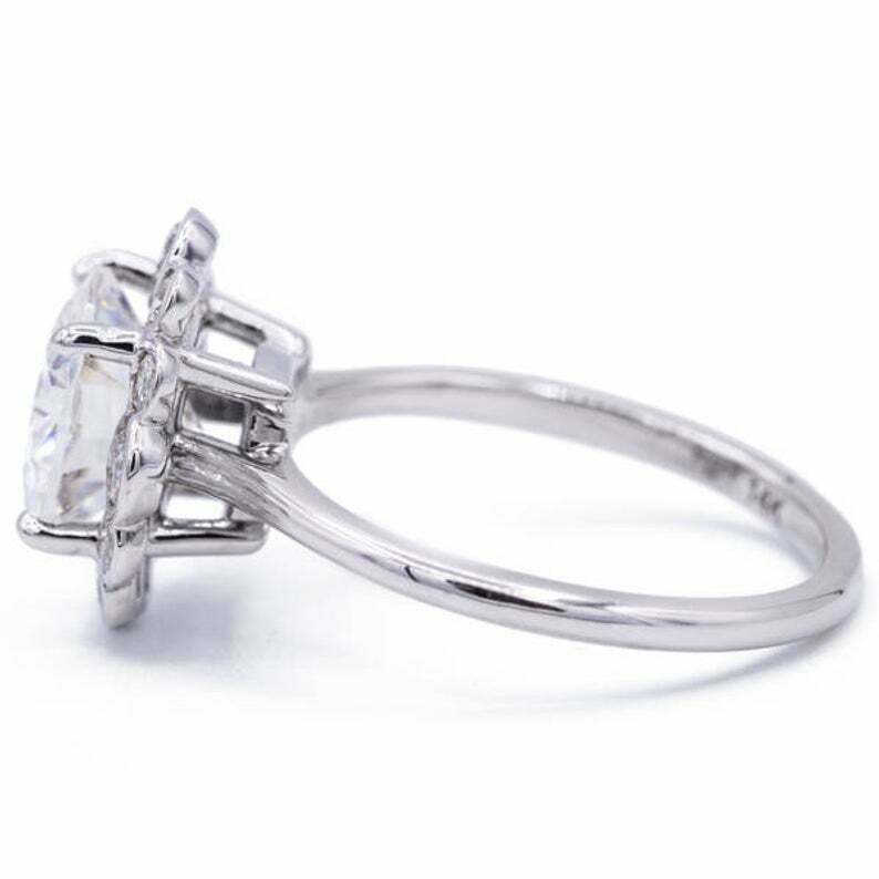 2.35ct Round Cut VVS1D Diamond Engagement Ring Floral Halo 14k White Gold Finish