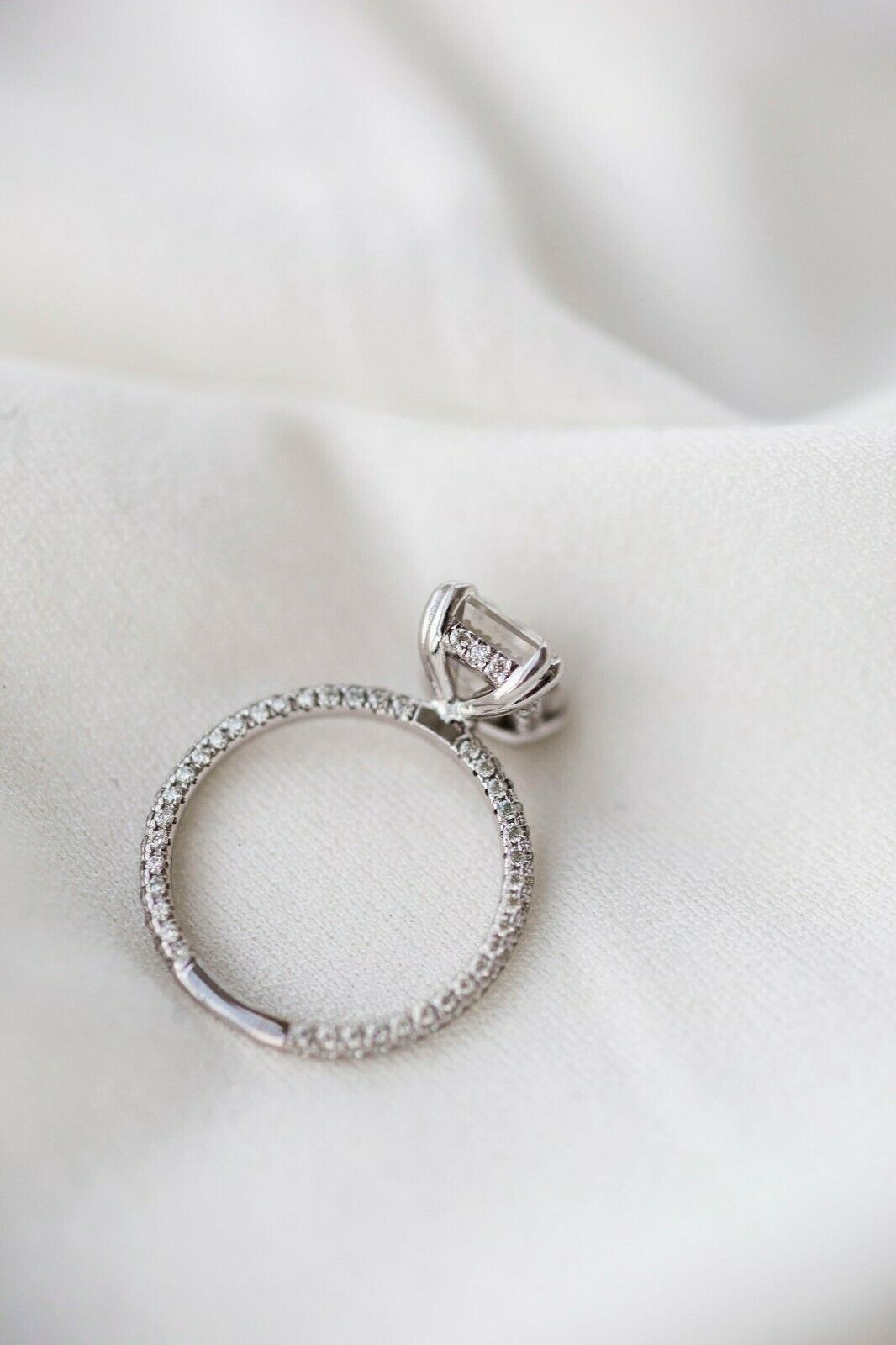 2.3ct Asscher Cut Diamond Engagement Ring Hidden Halo Solitaire 14k White Gold Over
