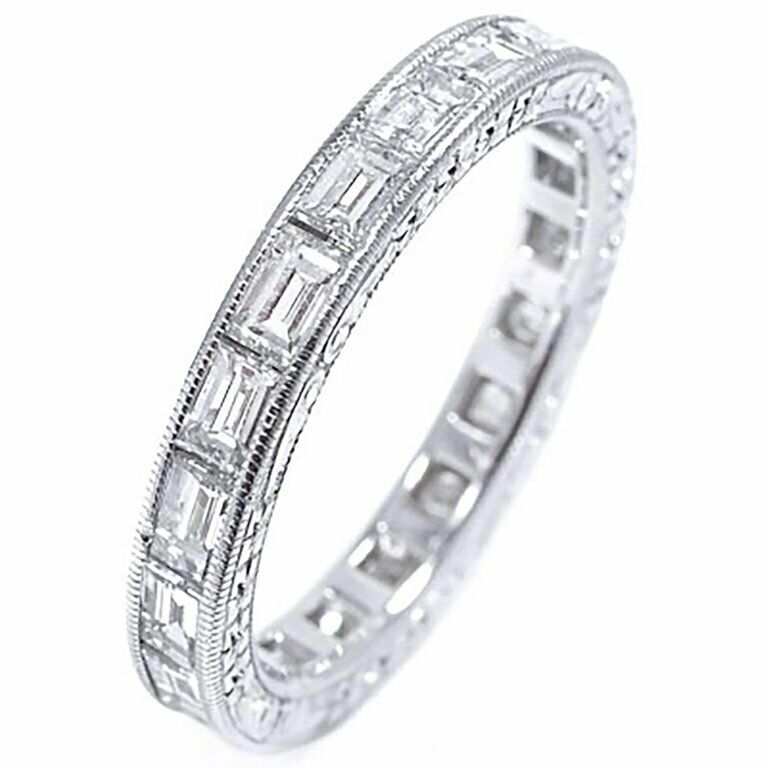 2.3ct Baguette Cut Diamond Wedding Ring Band Vintage Eternity 14k White Gold Over