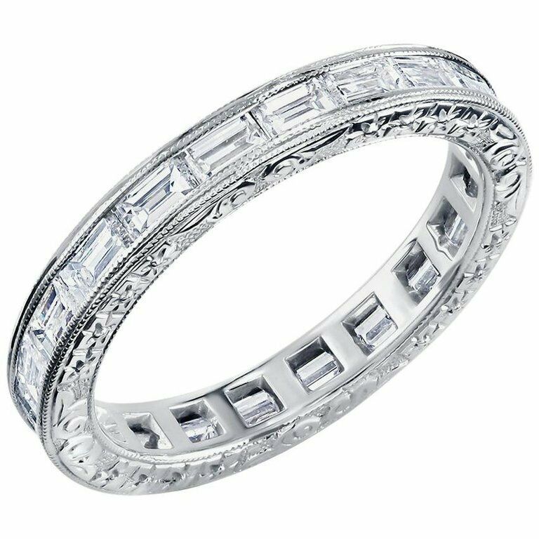 2.3ct Baguette Cut Diamond Wedding Ring Band Vintage Eternity 14k WhiteGold Over