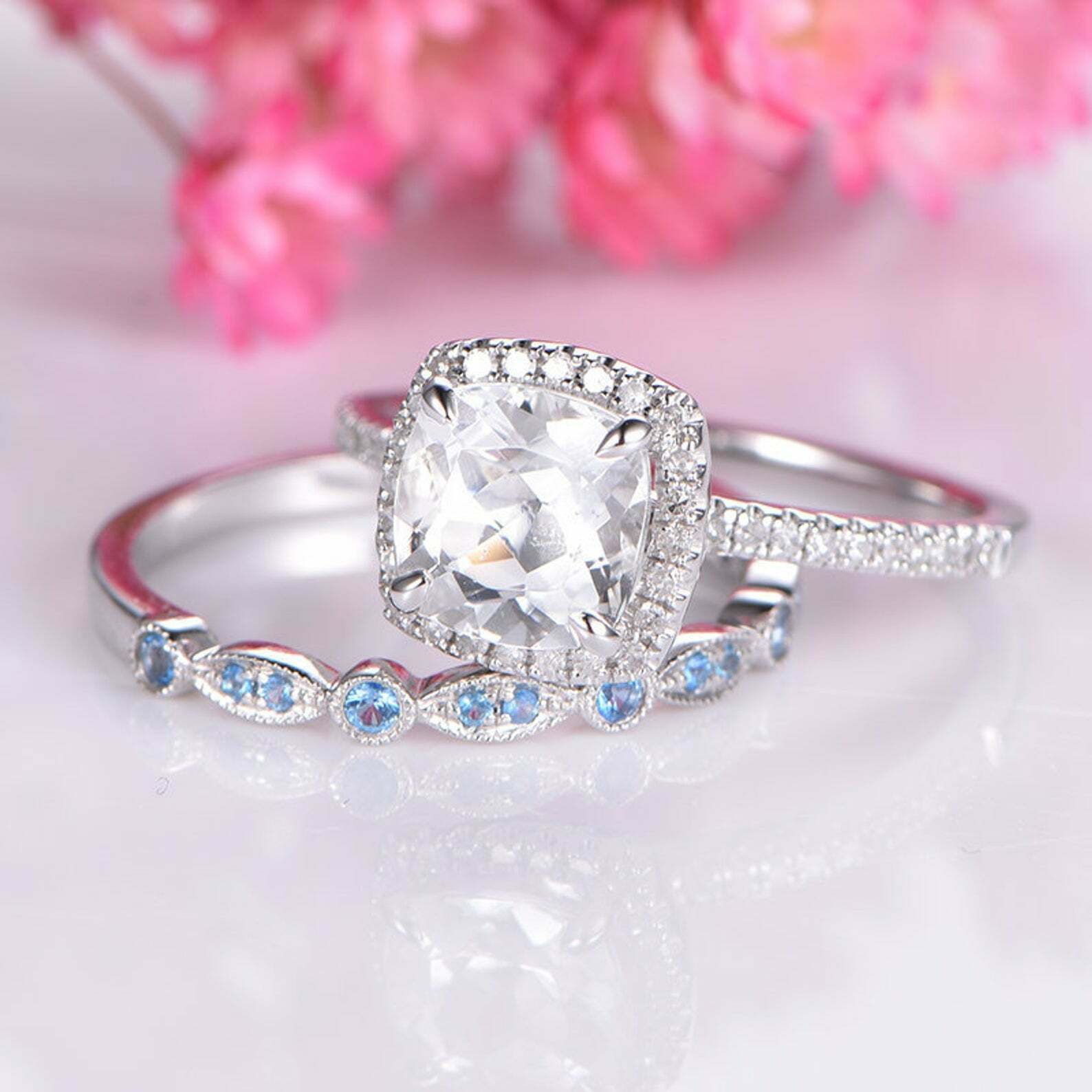 2.3ct Cushion Cut Diamond Engagement Ring Halo Bridal Set 14k White Gold Finish
