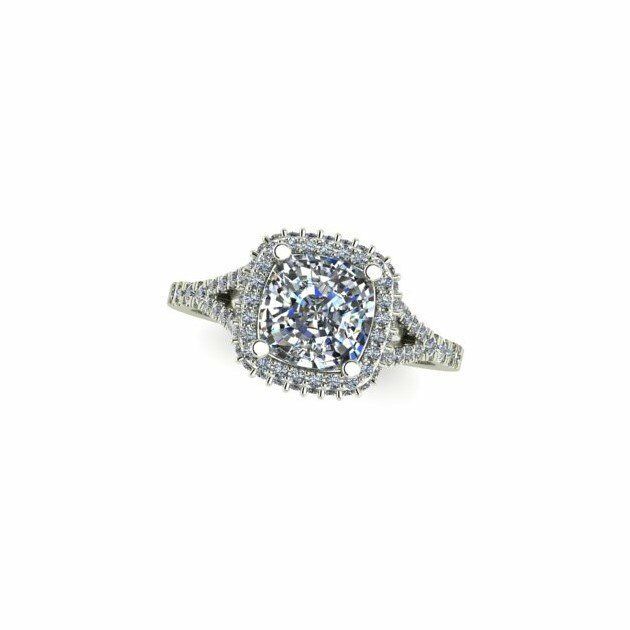 2.3ct Cushion Cut Diamond Split Shank Halo Engagement Ring 14k White Gold Finish