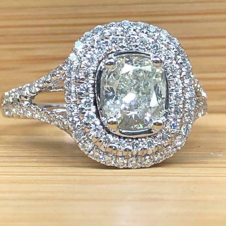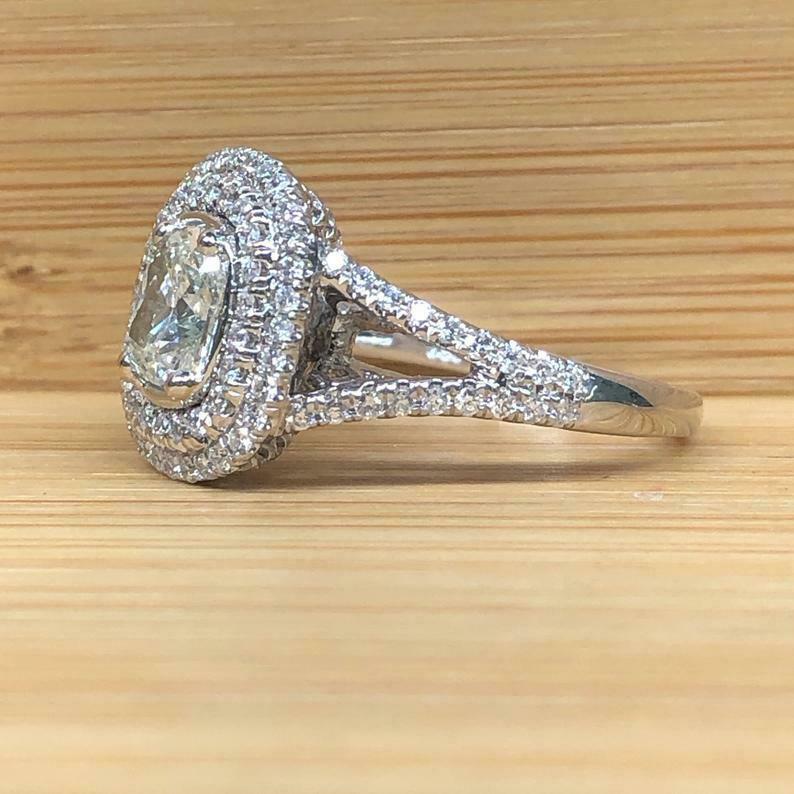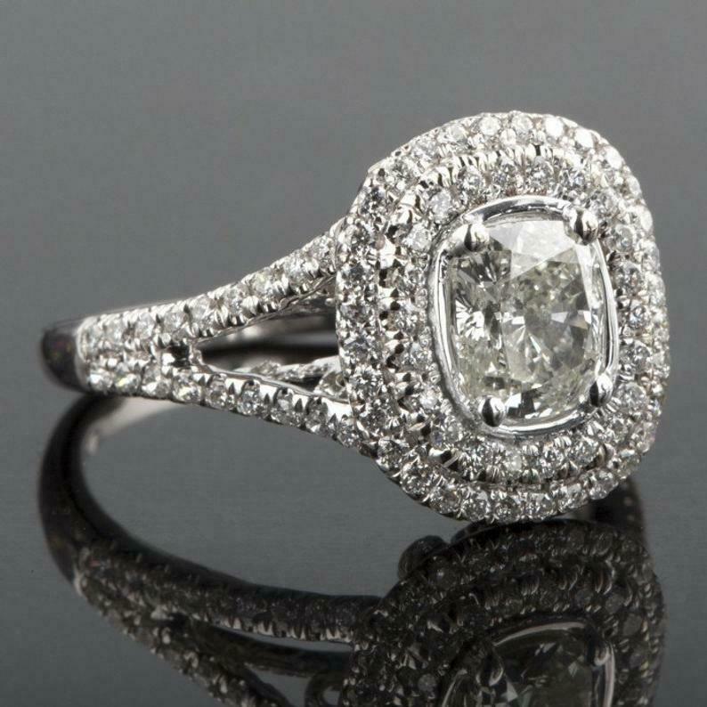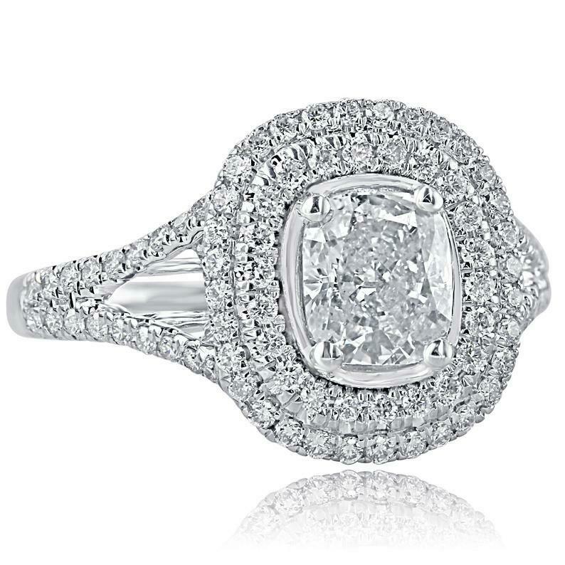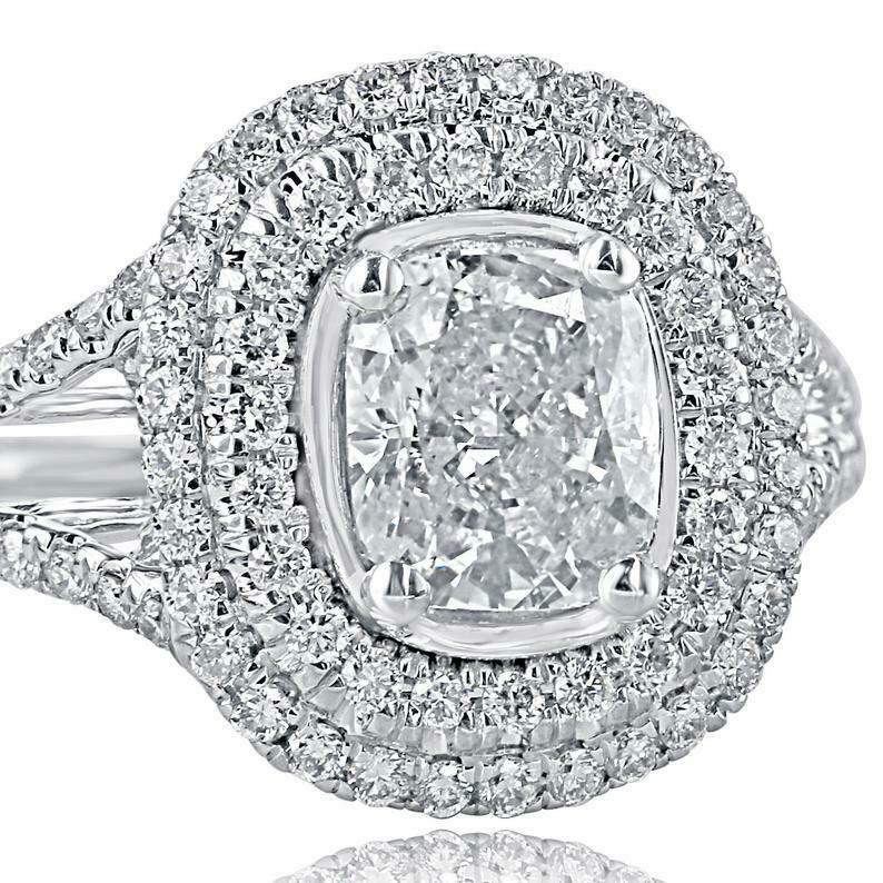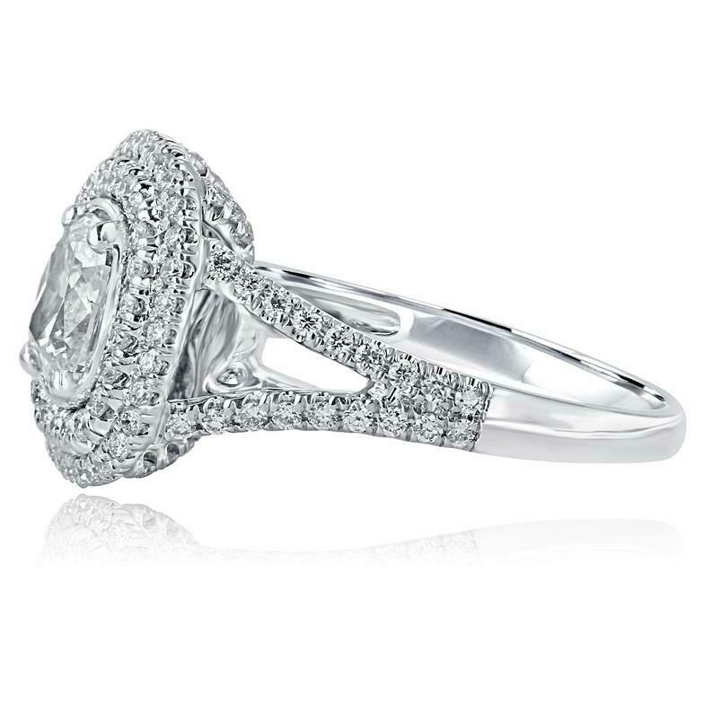 2.3ct Cushion Cut Diamond Engagement Ring Dual Halo Split Shank 14k White Gold Over