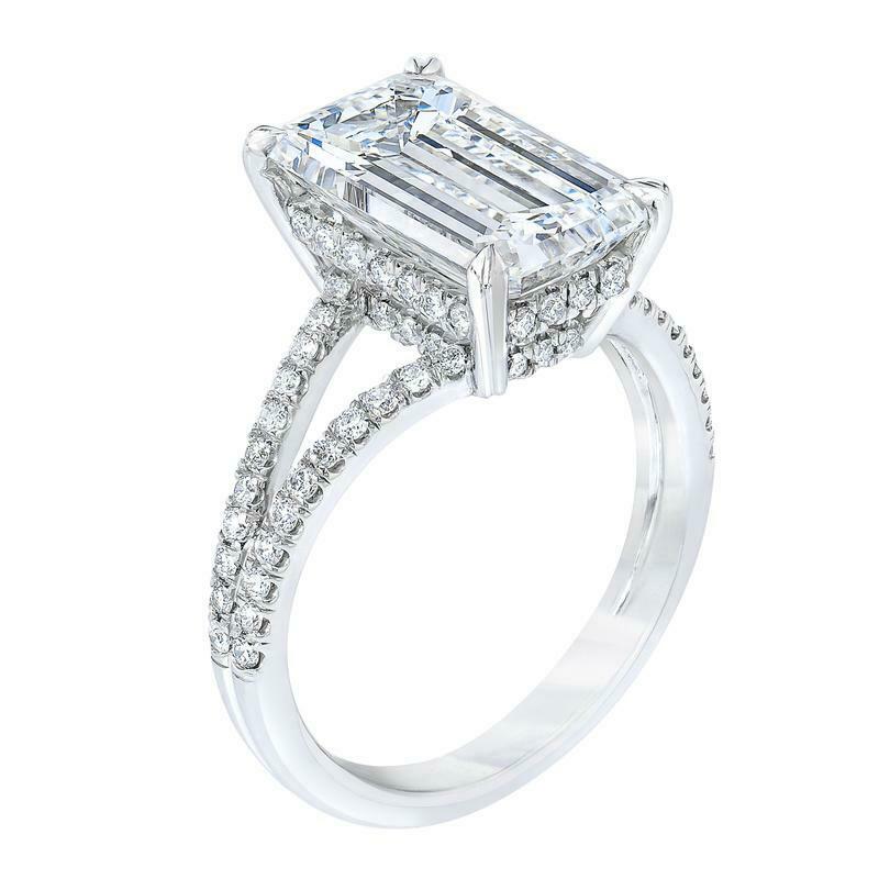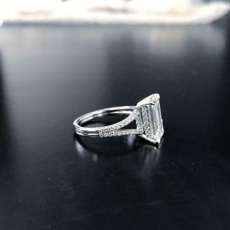 2.3ct Emerald Cut VVS1D Diamond Engagement Ring 14k White Gold Finish Split Shank