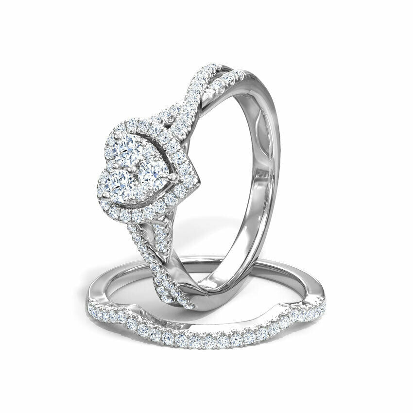 2.3ct Engagement Ring Round Cut Diamond Bridal Set Infinity 14k White Gold Finish