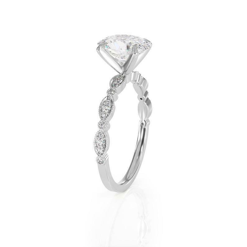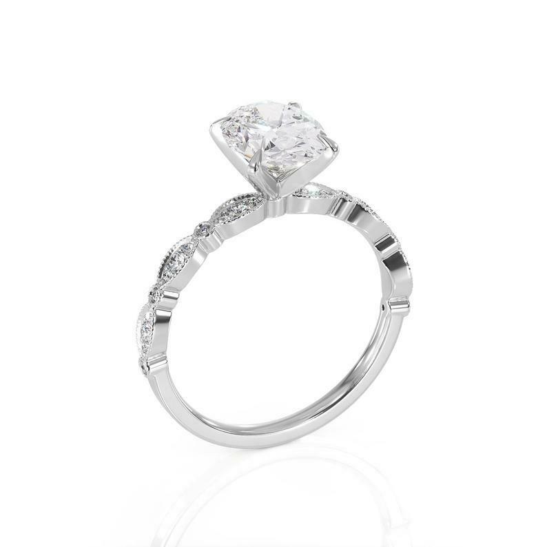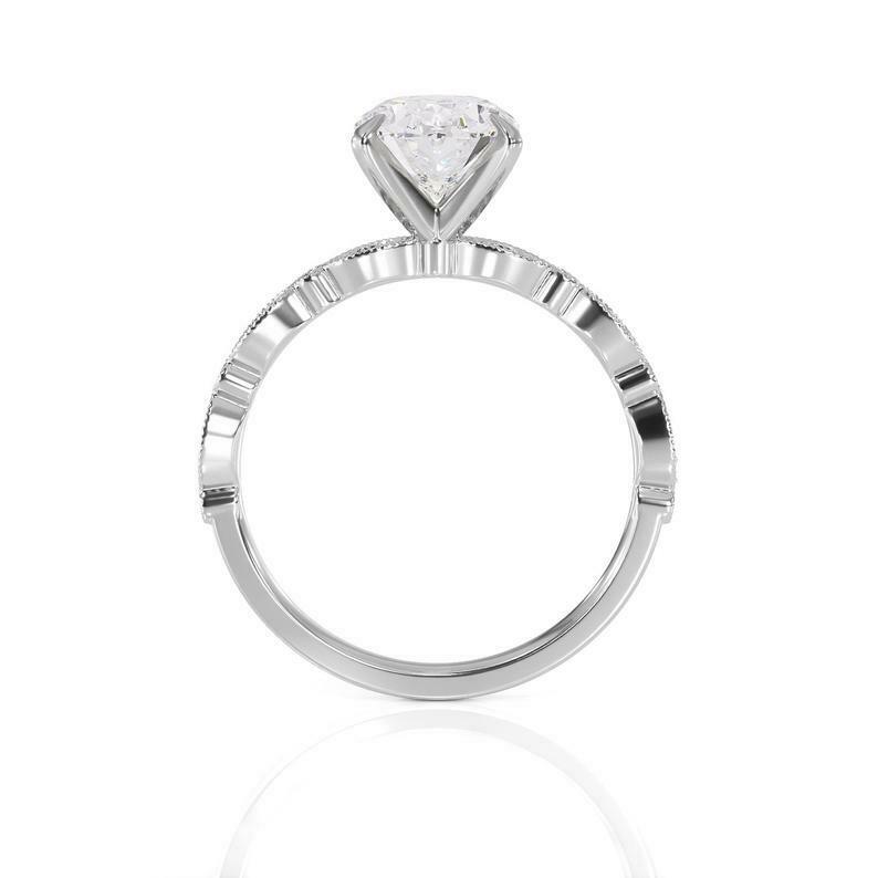 2.3ct Oval Cut Diamond Engagement Ring Milgrain Solitaire 14k White Gold Finish