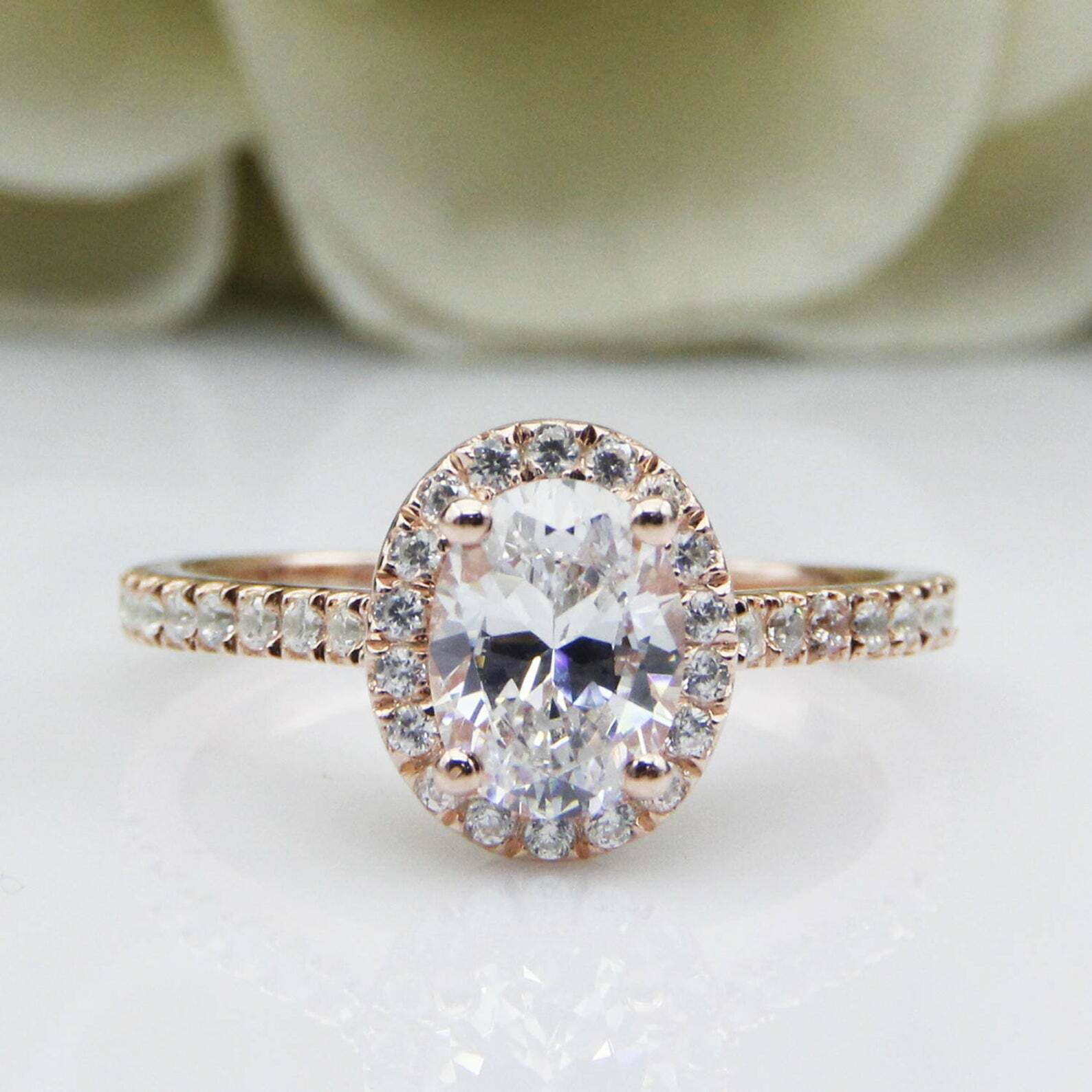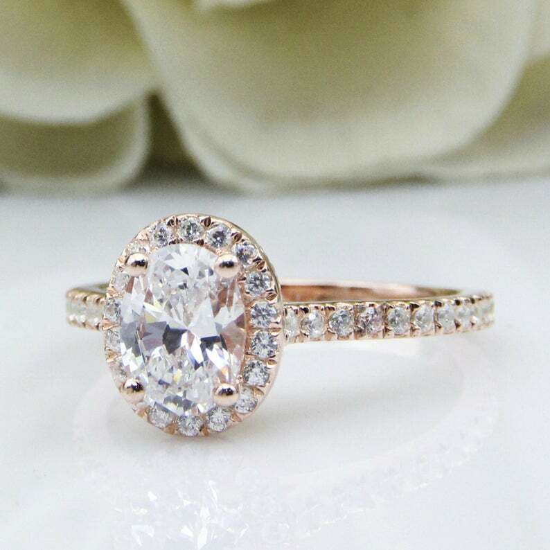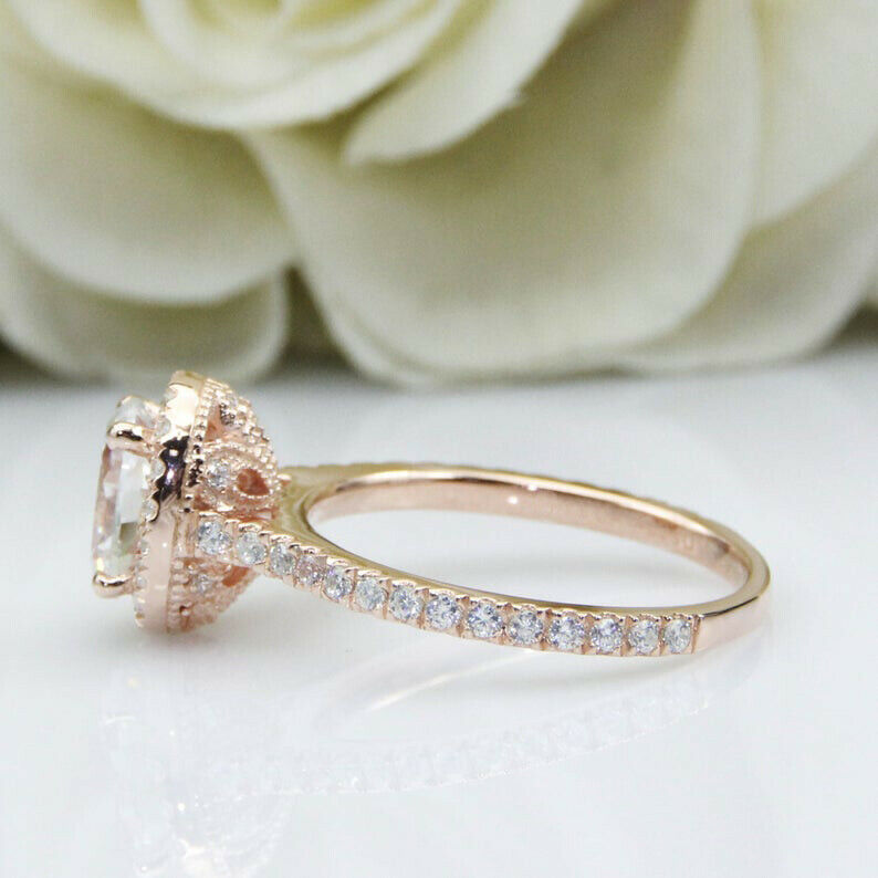 2.3ct Oval Cut Diamond Engagement Ring Vintage Halo Design 14k Rose Gold Finish