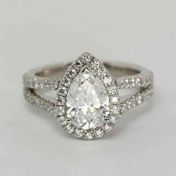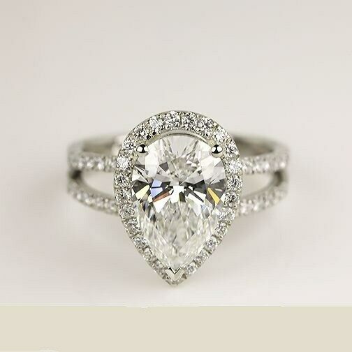 2.3Ct Pear Cut Diamond Split Shank Halo Engagement Ring 14K White Gold Finish