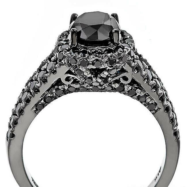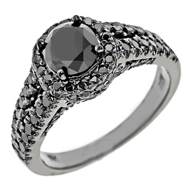 2.3ct Round Black Diamond Engagement Ring Split Shank Halo 14k Black Gold Finish