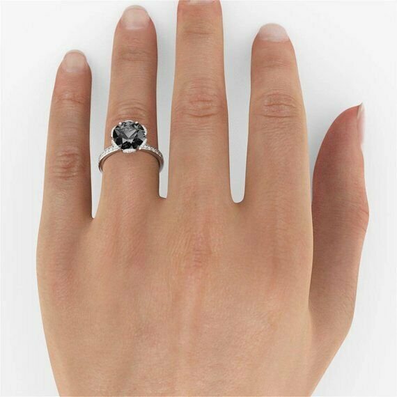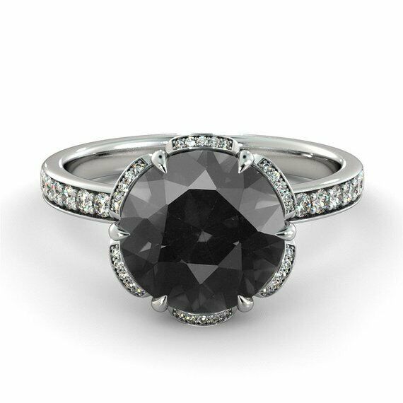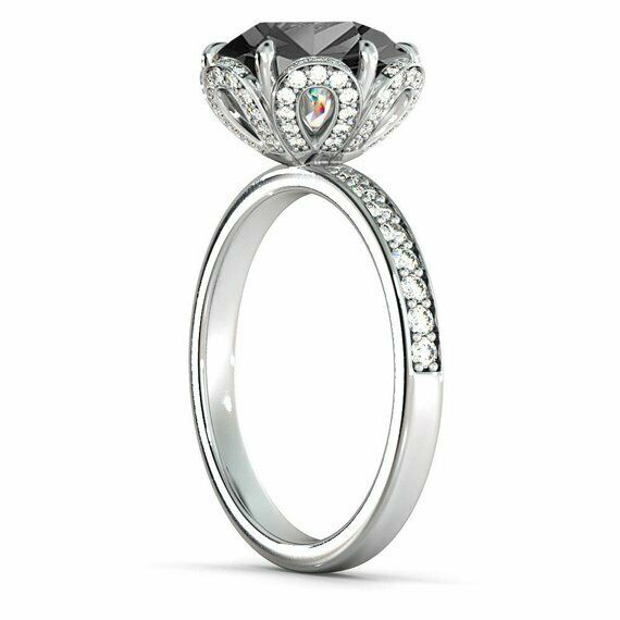 2.3ct Round Cut Black Diamond Floral Women Engagement Ring 14k White Gold Finish