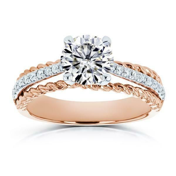 2.3Ct Round Cut Diamond Braided Solitaire with Accent Ring 14K Dual Gold Finish