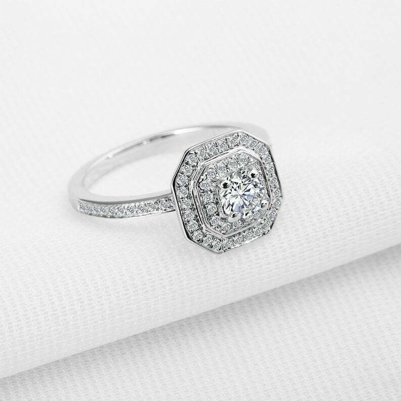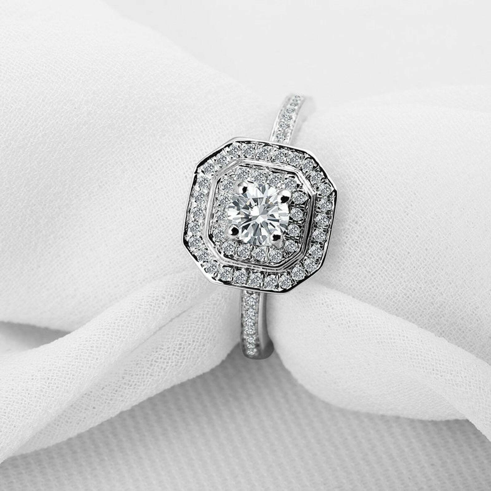 2.3ct Round Cut Diamond Dual Halo Solitaire with Accent Ring 14k White Gold Over