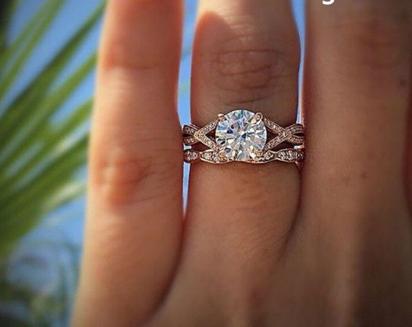 2.3ct Round Cut Diamond Engagement Ring 14k Rose Gold Finish Infinity Bridal Set