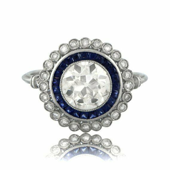 2.3ct Round Cut Diamond Engagement Ring 14k White Gold Finish Milgrain Art Deco