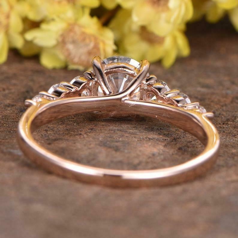 2.3ct Round Cut Diamond Engagement Ring Accents Solitaire 14k Rose Gold Finish