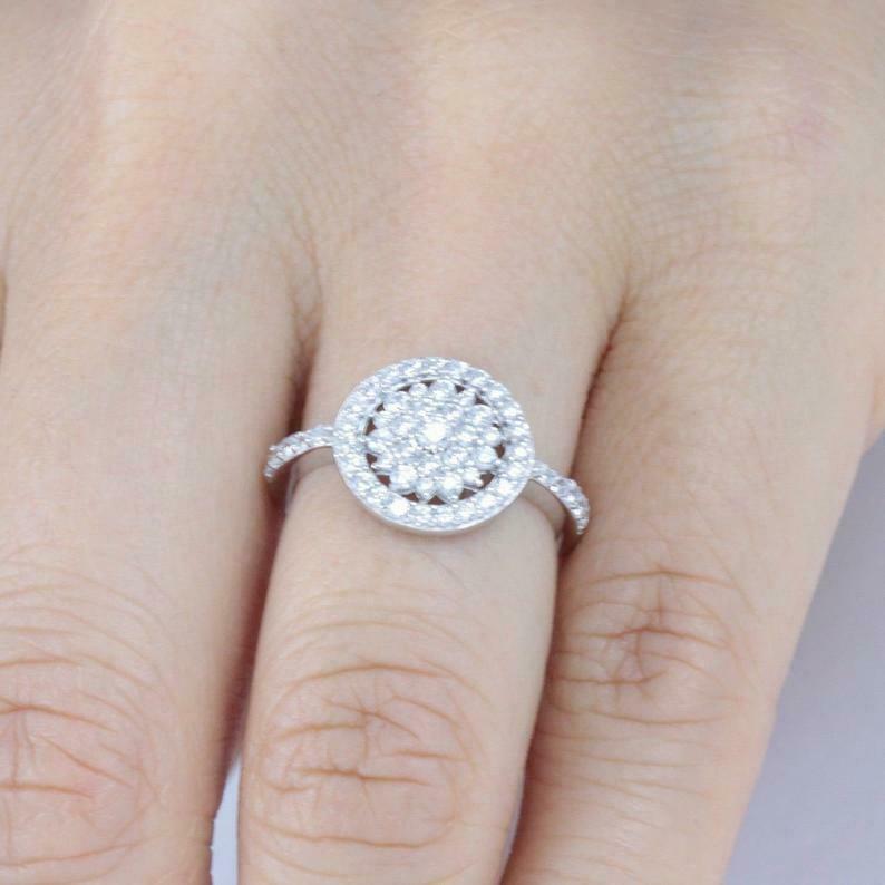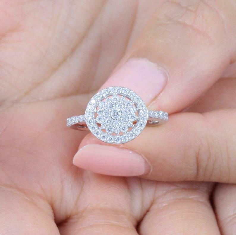 2.3ct Round Cut Diamond Engagement Ring Floral Halo Cluster 14k White Gold Finish