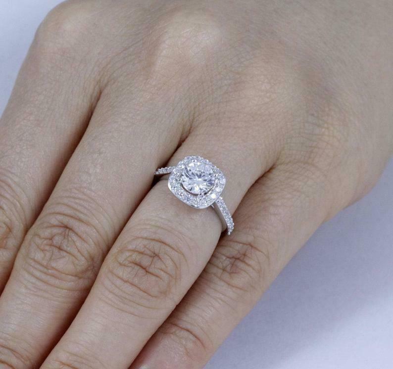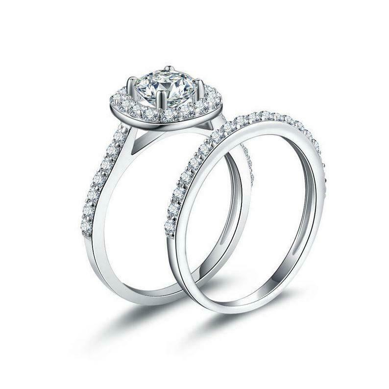 2.3ct Round Cut Diamond Engagement Ring Halo Bridal Set Band 14k White Gold Over