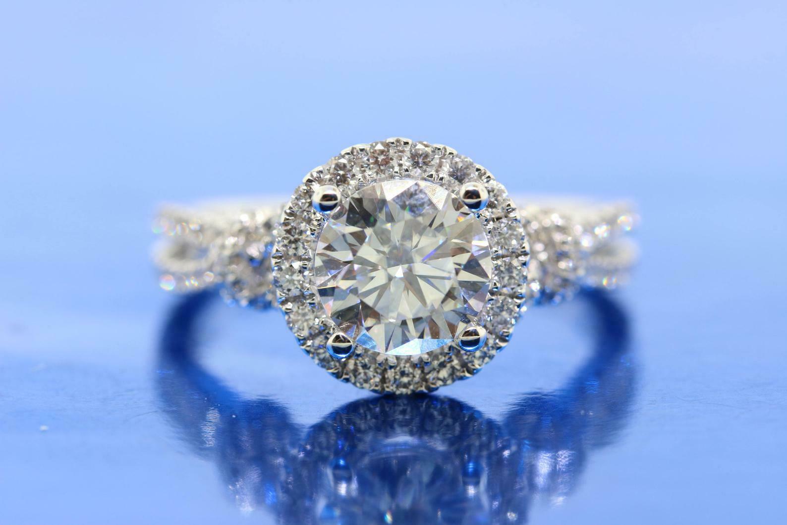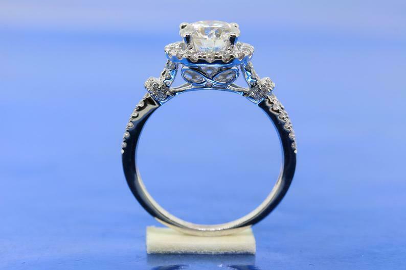 2.3ct Round Cut Diamond Halo Split Band Engagement Ring 14k White Gold Finish