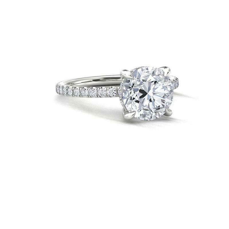2.3Ct Round Cut Diamond Hidden Halo Women Solitaire Ring 14K White Gold Finish
