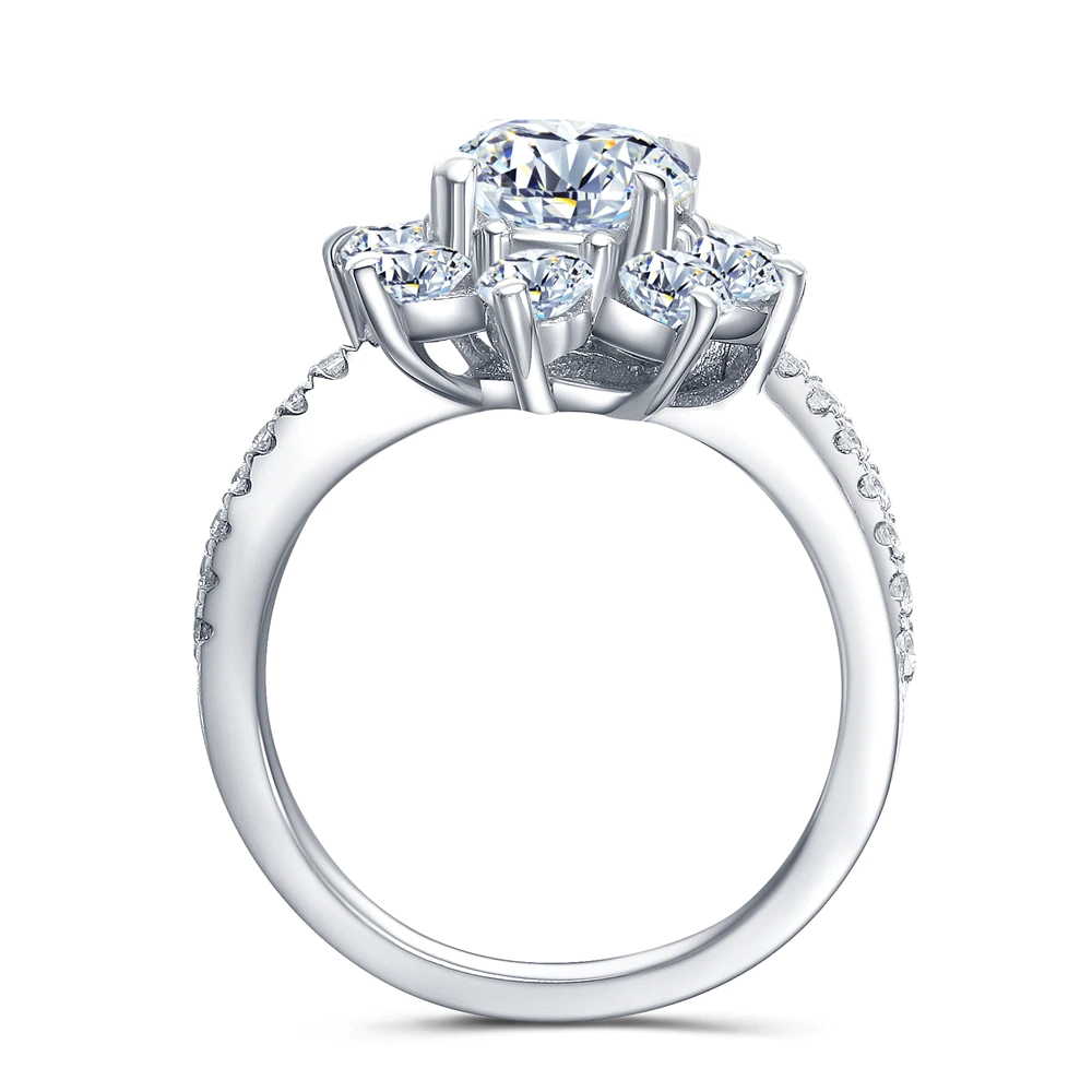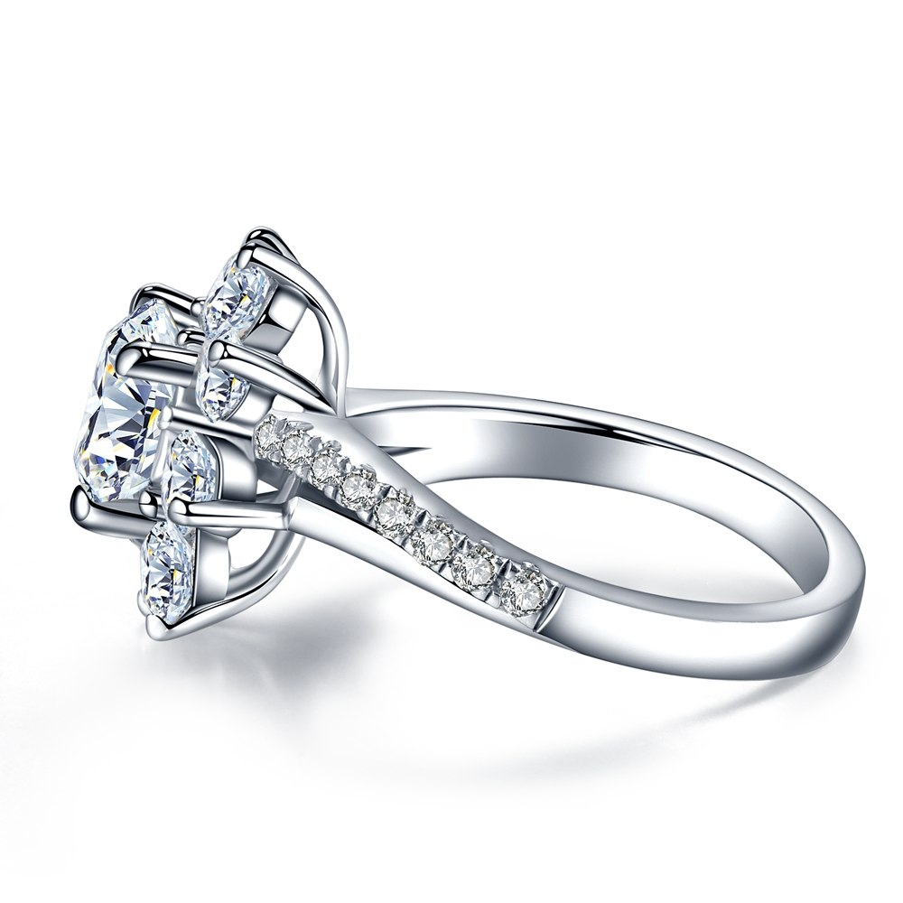 2.3ct Round Cut Diamond Sunflower Design Engagement Ring 14k White Gold Finish