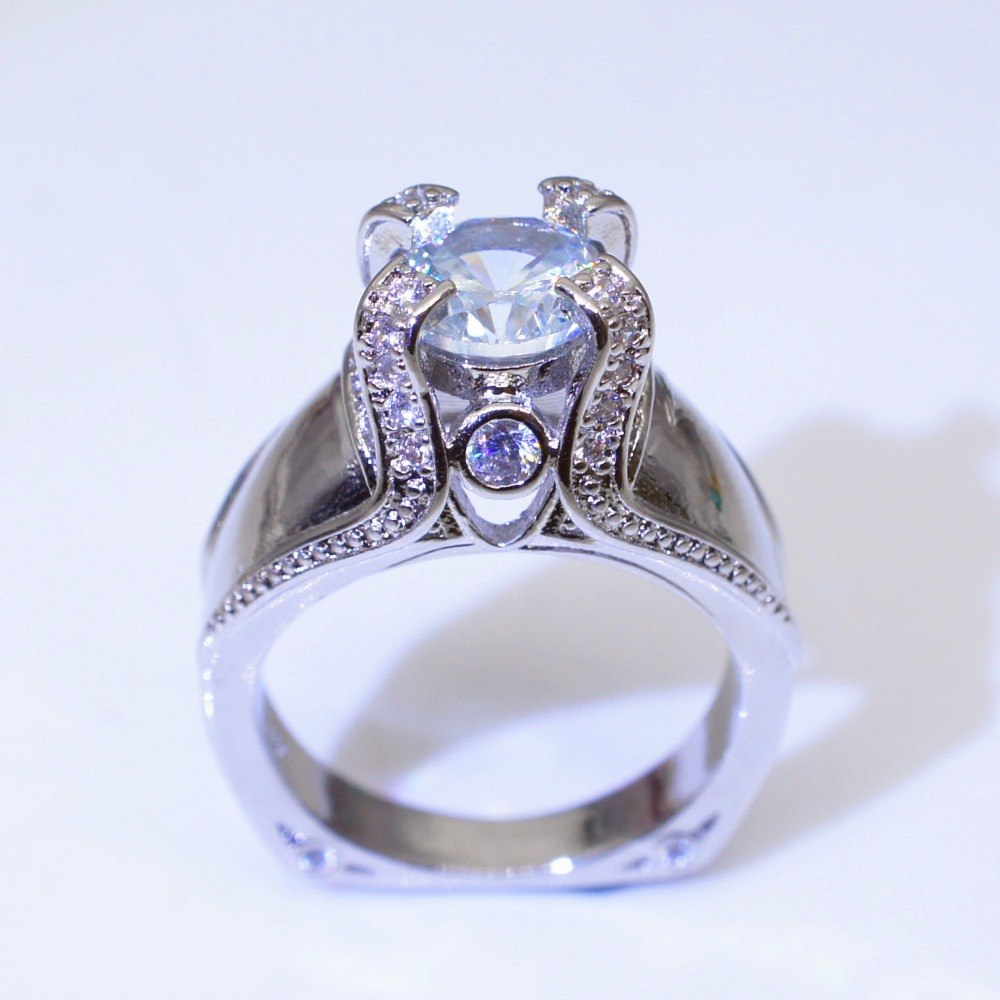 2.3ct Round Cut Diamond Wide Band Solitaire Engagement Ring 14k White Gold Over