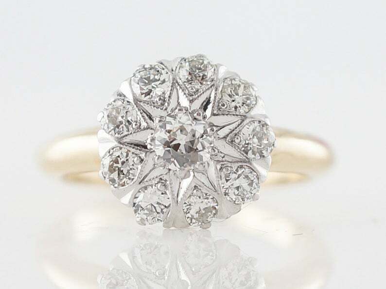 2.3ct Round Cut VVS1D Diamond Engagement Ring Vintage Cluster 14k Dual Gold Over