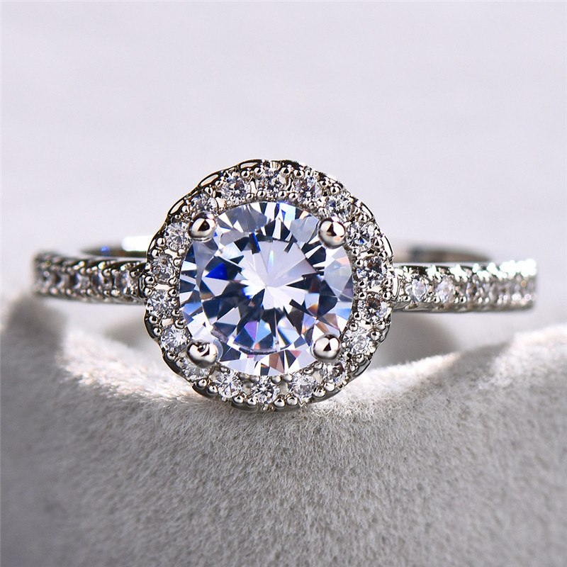 2.3ct Round Diamond Engagement Ring 14k White Gold Finish Halo Solitaire Women