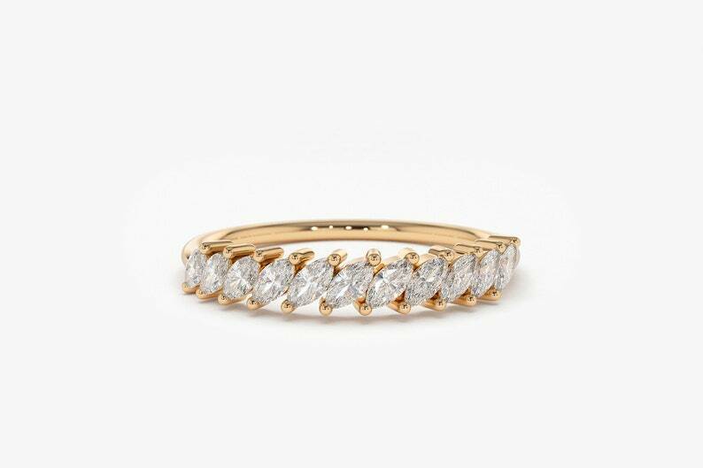 2.3ct Wedding Band Marquise Cut Diamond Stackable Half Eternity 14k Rose Gold Finish