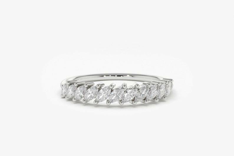 2.3ct Wedding Band Marquise Diamond Stackable Half Eternity 14k White Gold Over