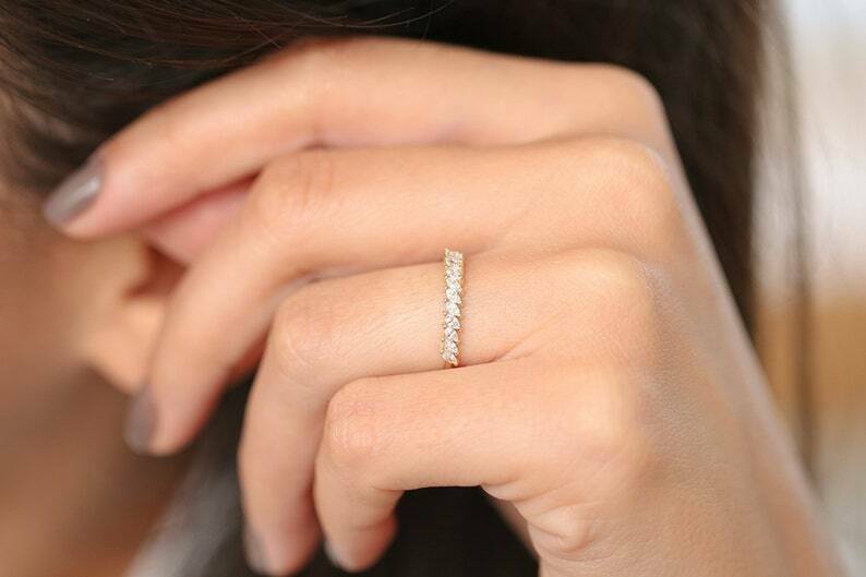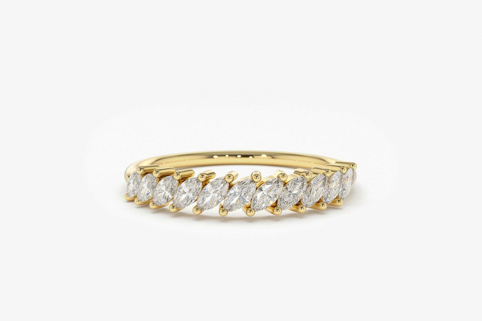 2.3ct Wedding Band Marquise Diamond Stackable Half Eternity 14k Yellow Gold Over