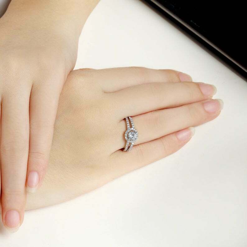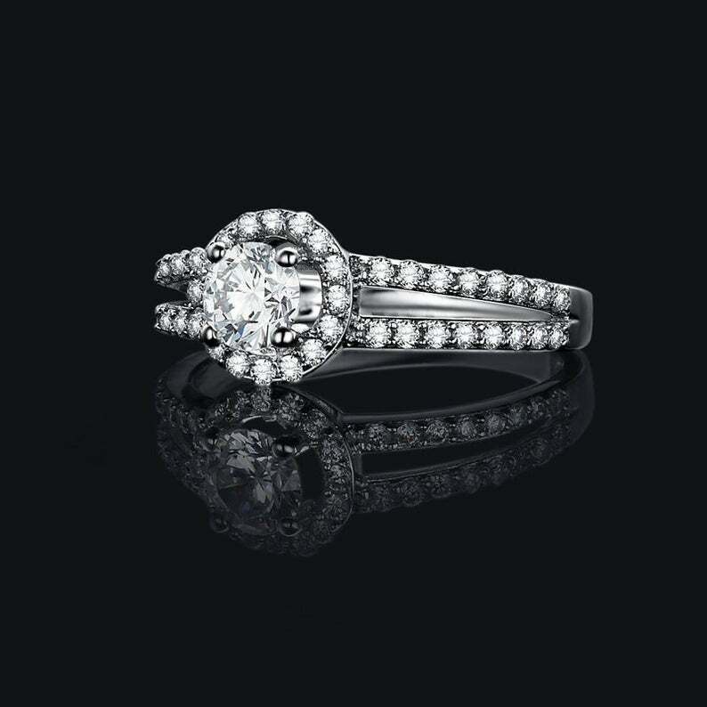 2.45ct Round Cut Diamond Engagement Ring Split Shank Halo 14k White Gold Finish