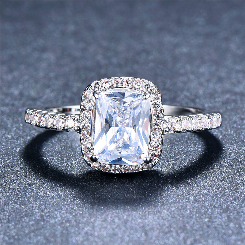 2.4ct Cushion Cut Diamond Engagement Ring 14k White Gold Finish Accent Solitaire