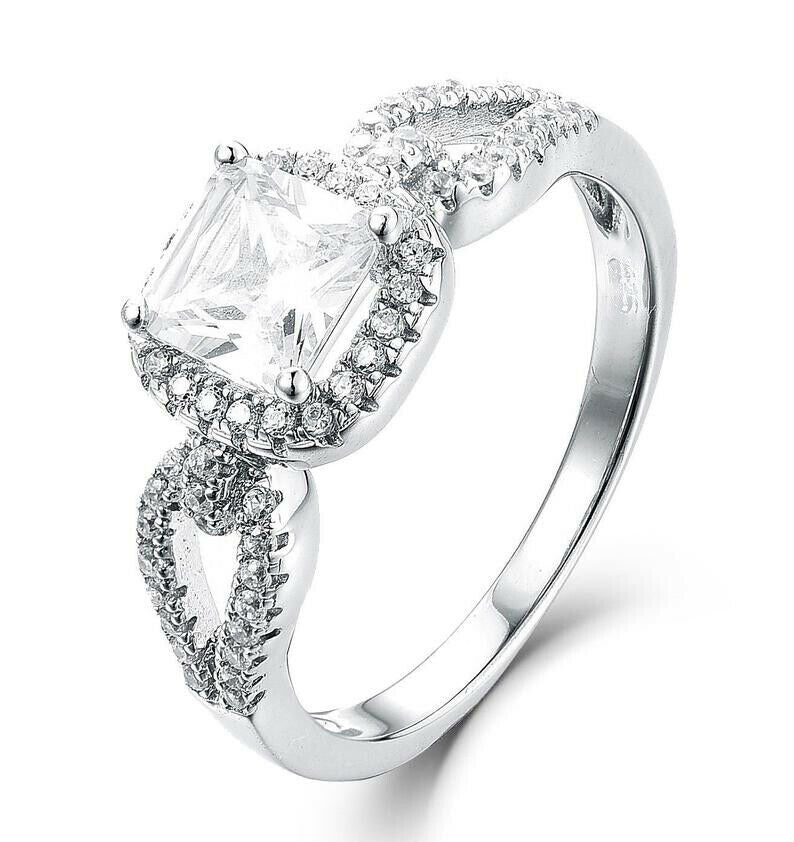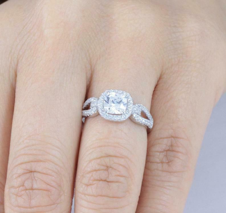 2.4ct Cushion Cut Diamond Engagement Ring Split Shank Halo 14k White Gold Finish