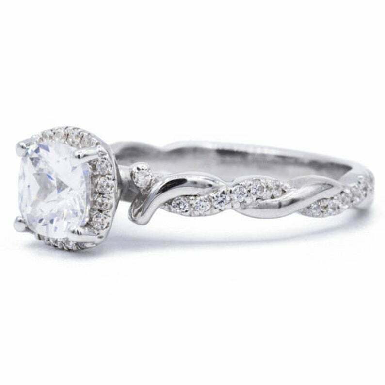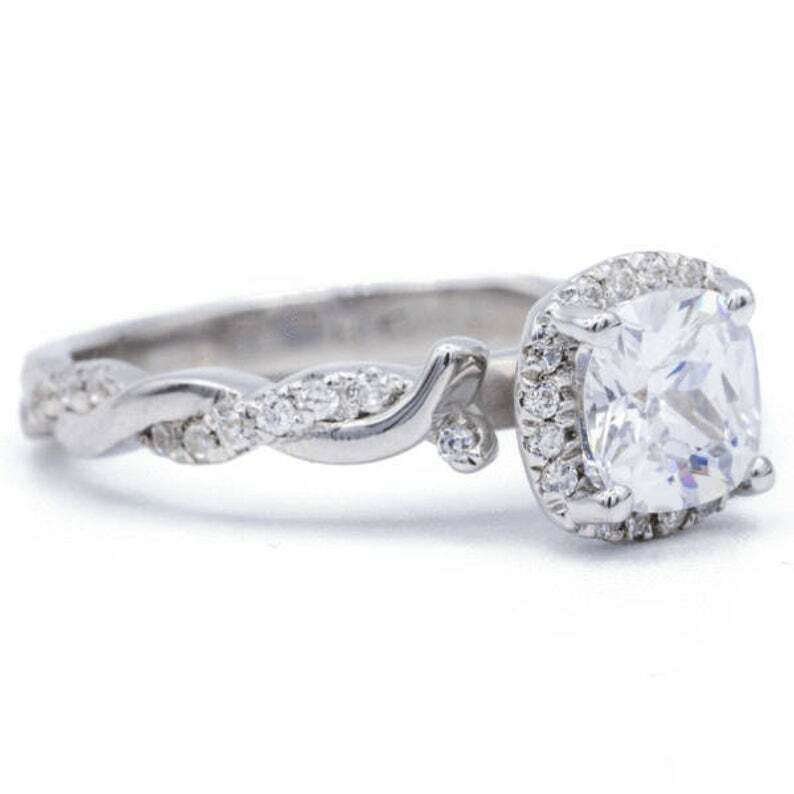 2.4ct Cushion Cut Diamond Engagement Ring Twist Shank Halo 14k White Gold Finish
