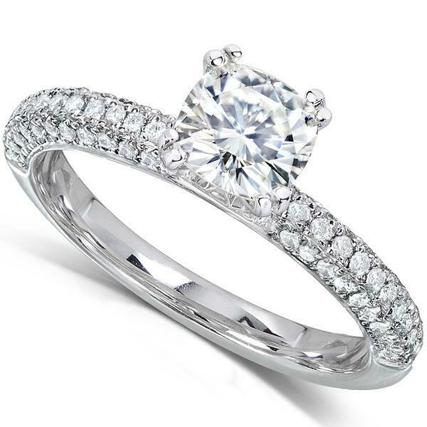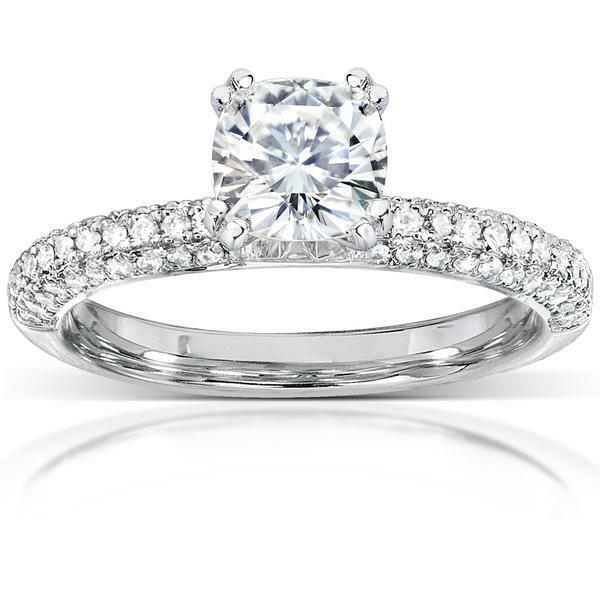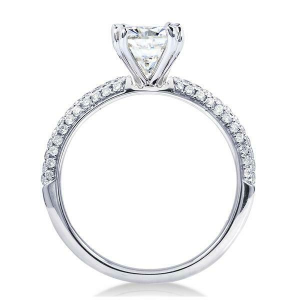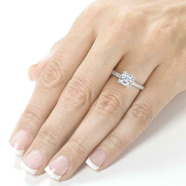 2.4Ct Cushion Cut Diamond Solitaire Ring 14K White Gold Finish Iced Round Accent