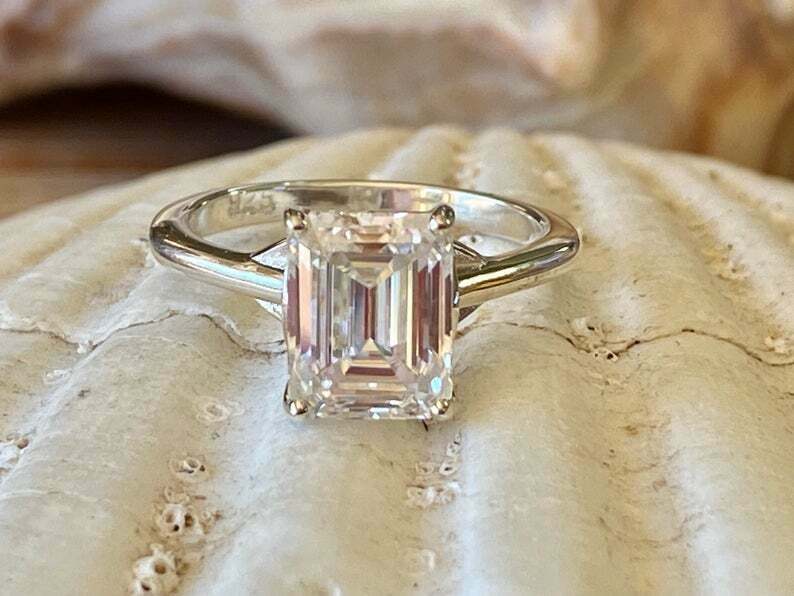 2.4ct Engagement Ring Emerald Cut Diamond 4 Prong Solitaire 14k WhiteGold Finish
