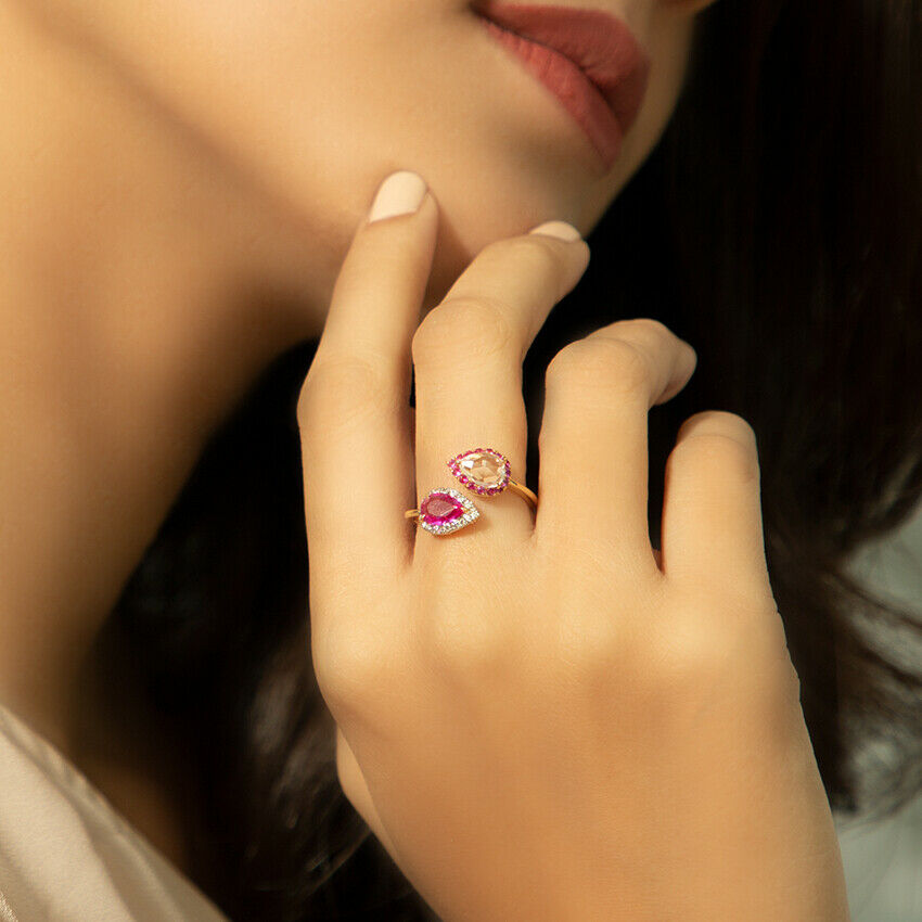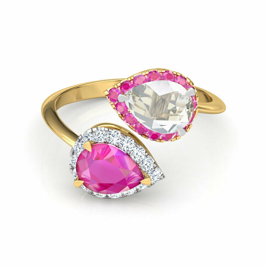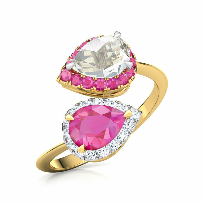 2.4ct Engagement Ring Pear Cut Diamond Ruby Halo Bypass 14k Yellow Gold Finish