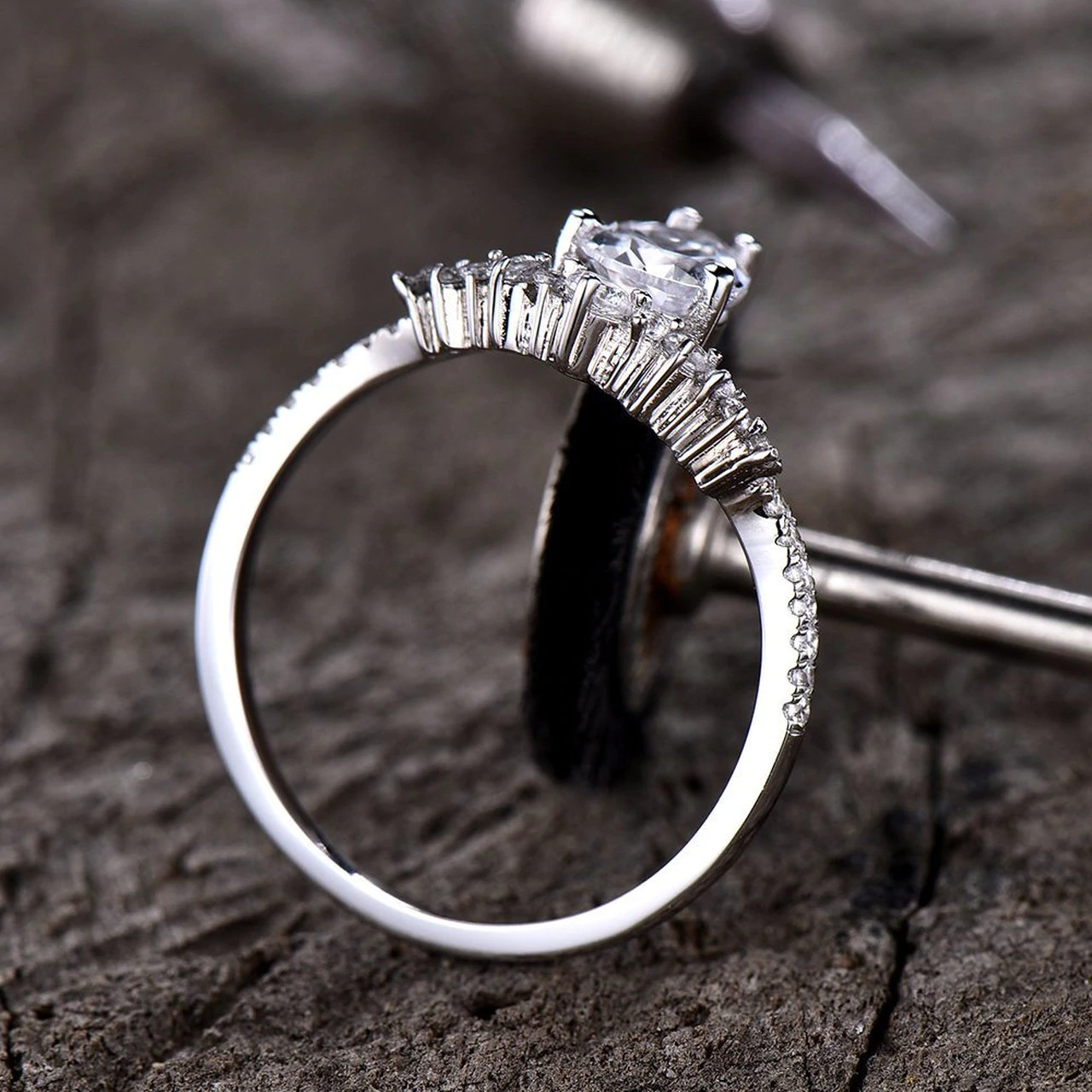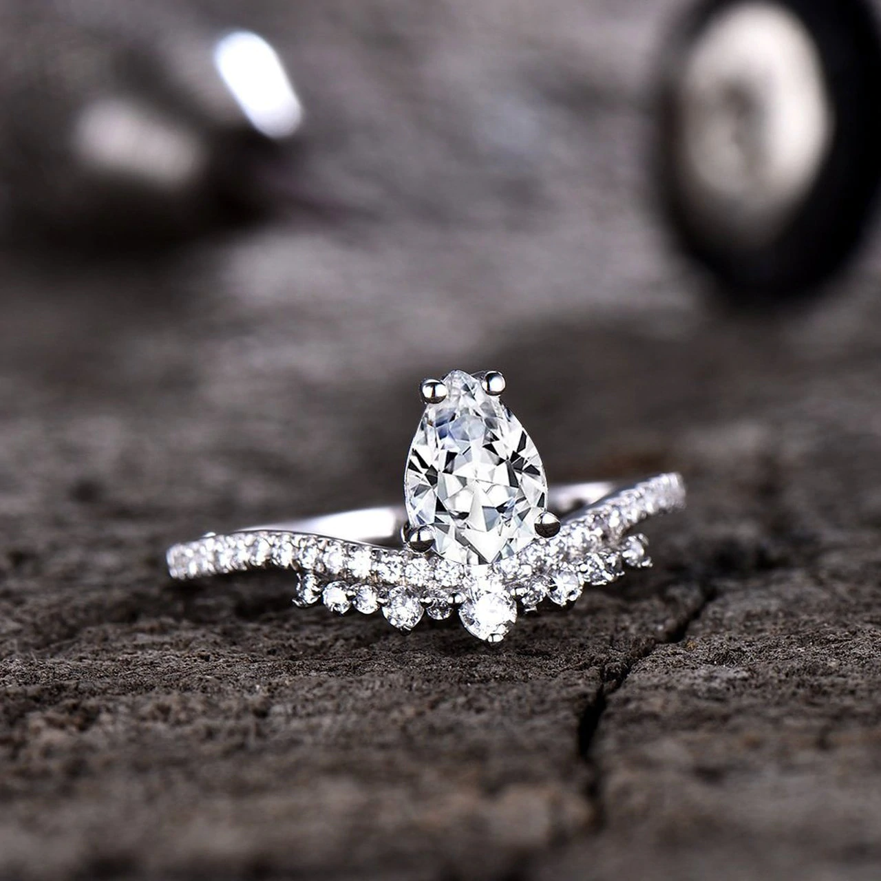 2.4ct Engagement Ring Pear Cut Diamond Unique Crown Promise 14k White Gold Over