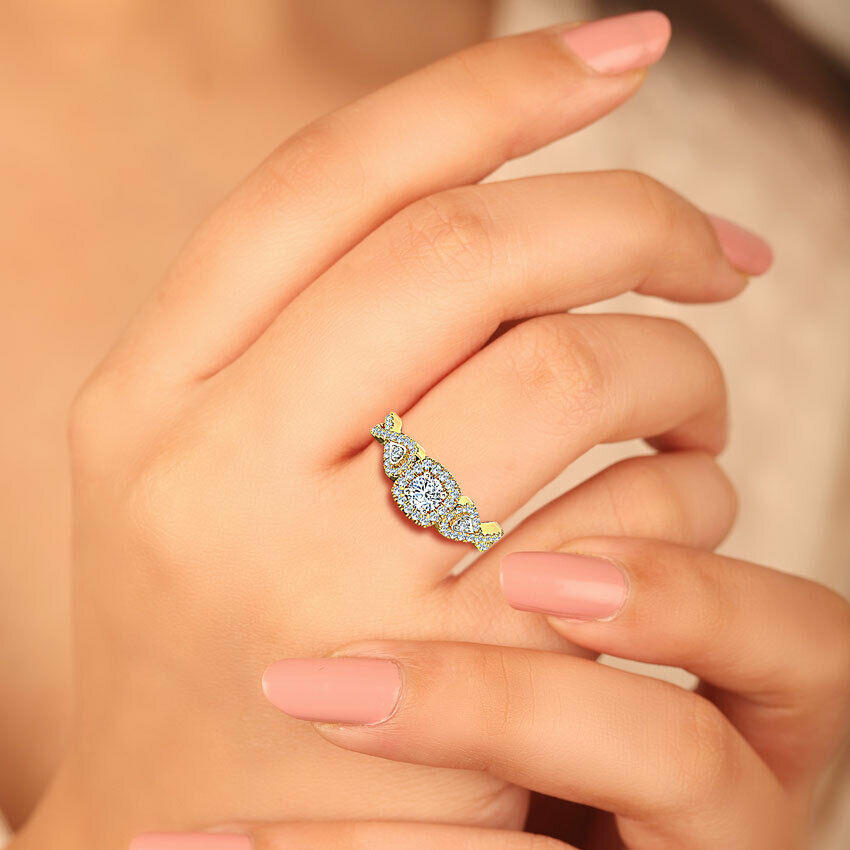 2.4ct Engagement Ring Round Cut Diamond Split Shank Halo 14k Yellow Gold Finish
