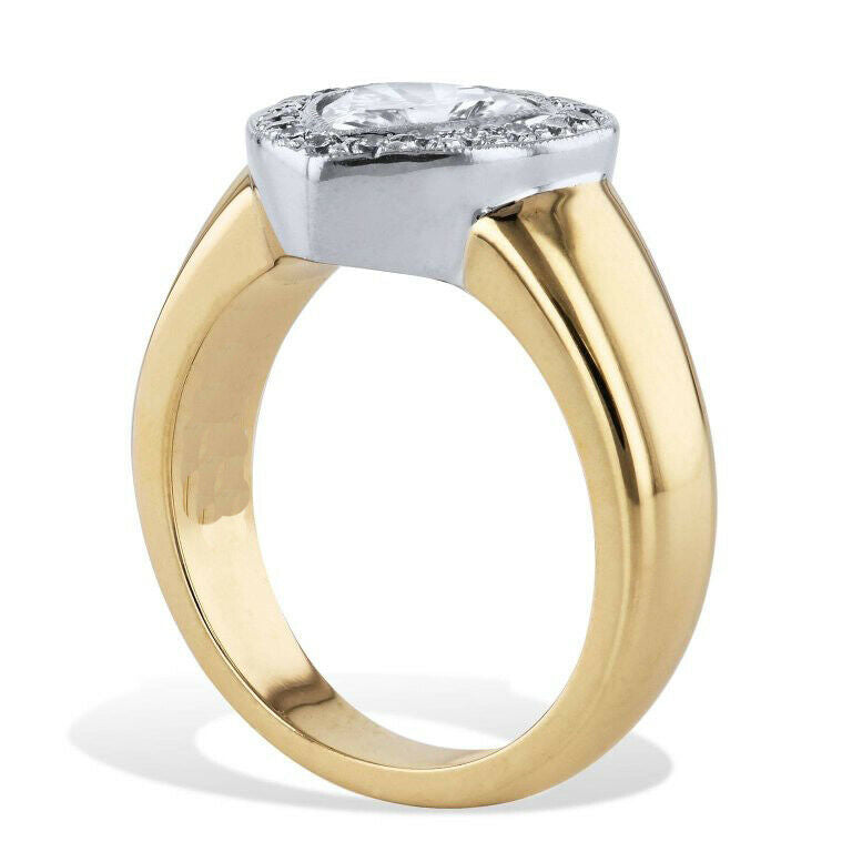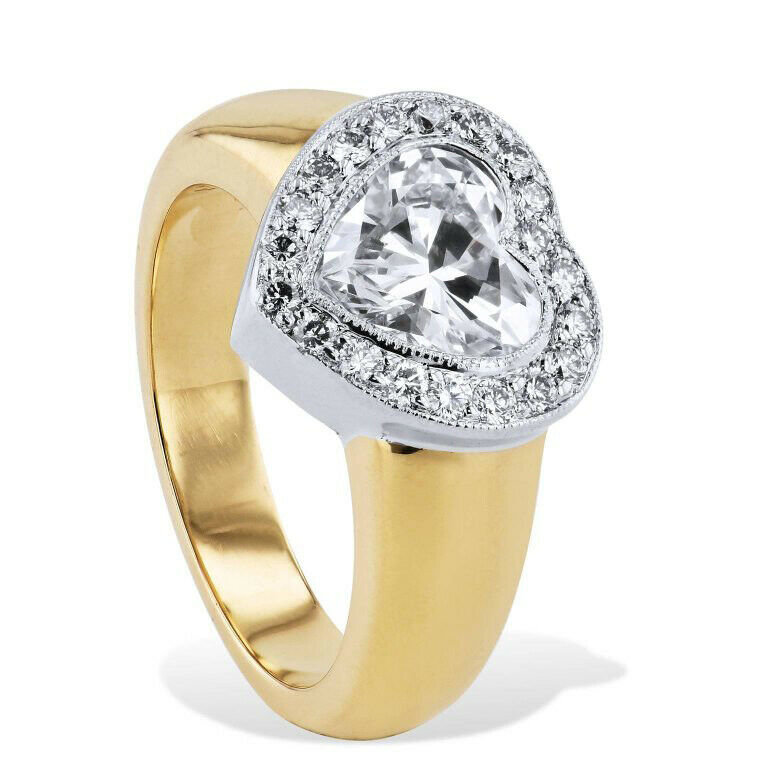 2.4ct Heart Cut Diamond Engagement Ring Halo Heart Shaped 14k Dual Tone Finish