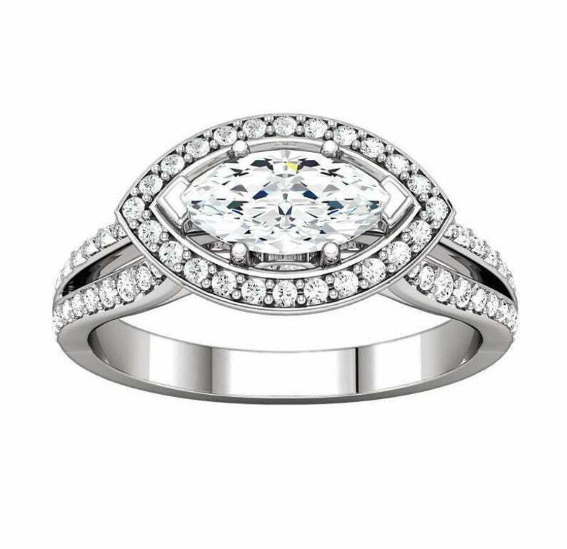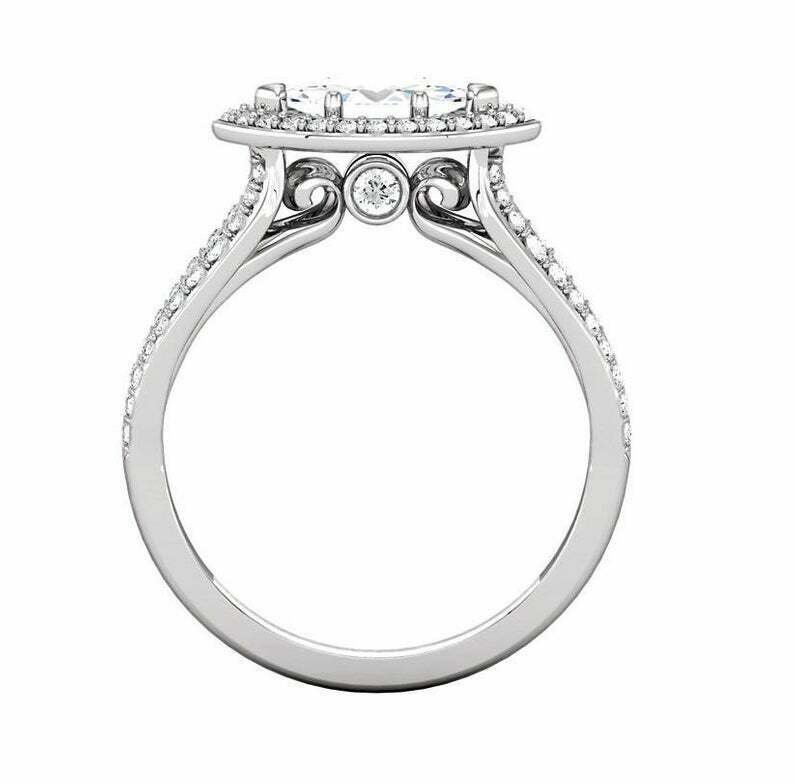 2.4ct Marquise Cut Diamond Engagement Ring Halo Split Shank 14k White Gold Over