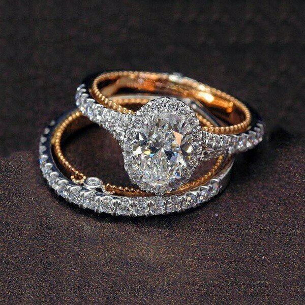 2.4ct Oval Diamond Engagement Ring 14k White Gold Finish Trendy Halo Bridal Set