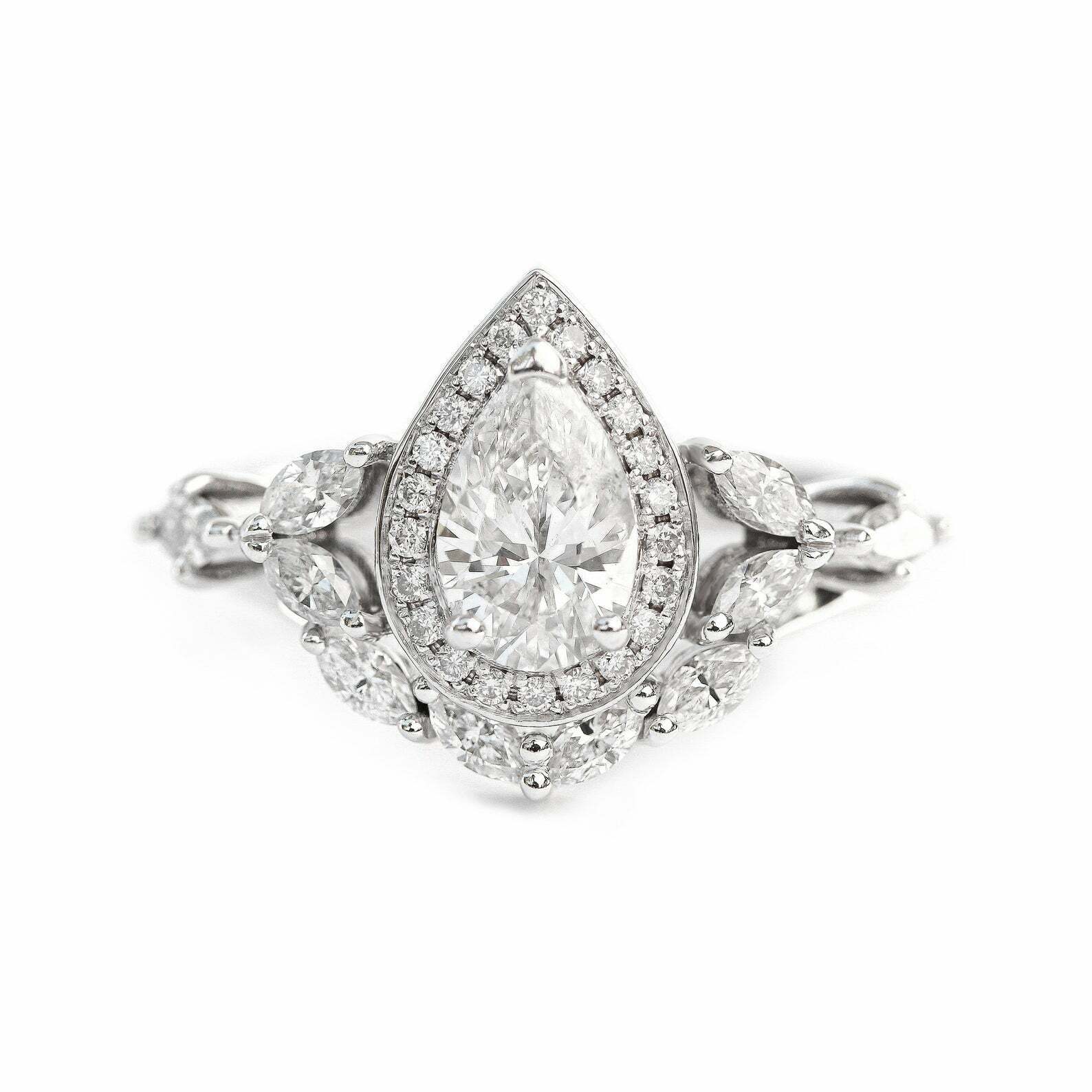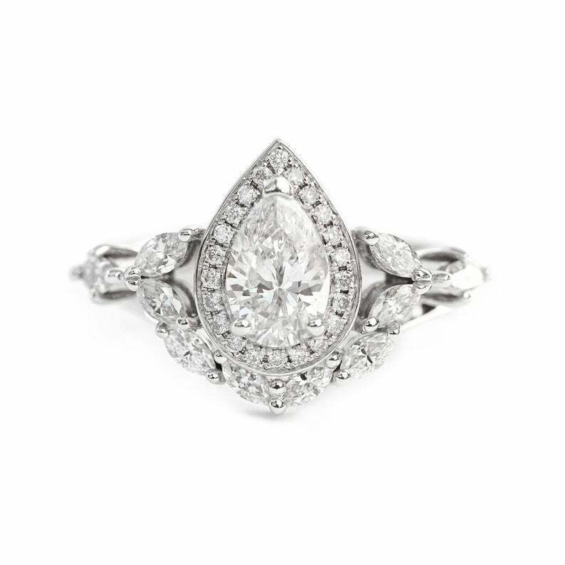 2.4ct Pear Cut Diamond Halo Bridal Set Engagement Ring Band 14k White Gold Finish