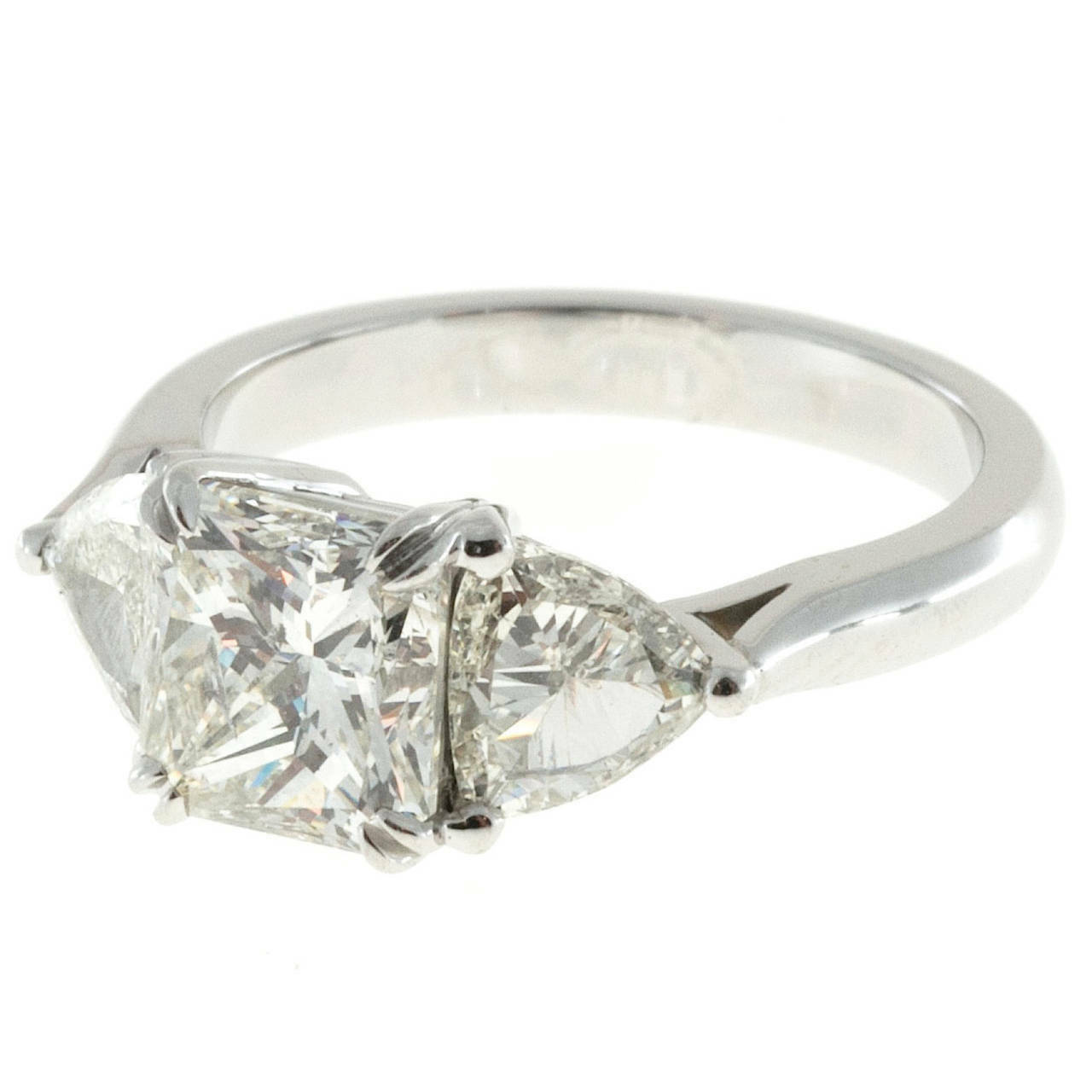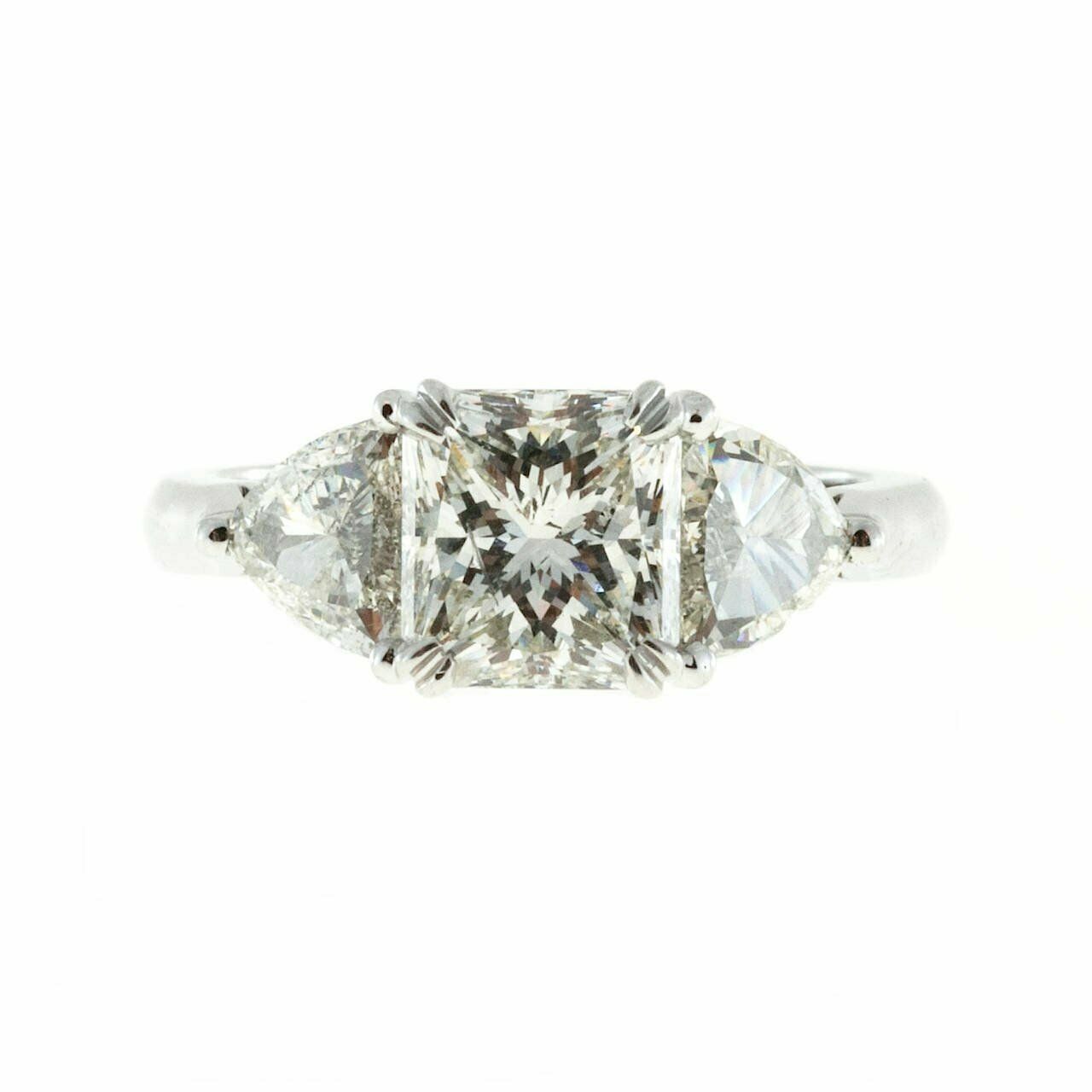 2.4Ct Princess Cut Diamond Solitaire Trilogy Ring 14k White Gold Finish Trillion Accents