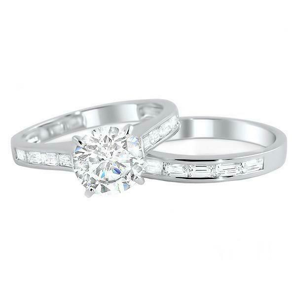 2.4ct Round & Baguette Cut Diamond Engagement Ring Bridal Set 14k WhiteGold Over