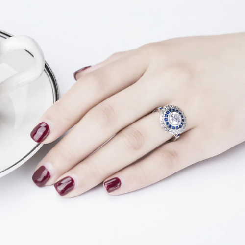 2.4ct Round Cut Diamond Engagement Ring 14k White Gold Finish Vintage Art Deco
